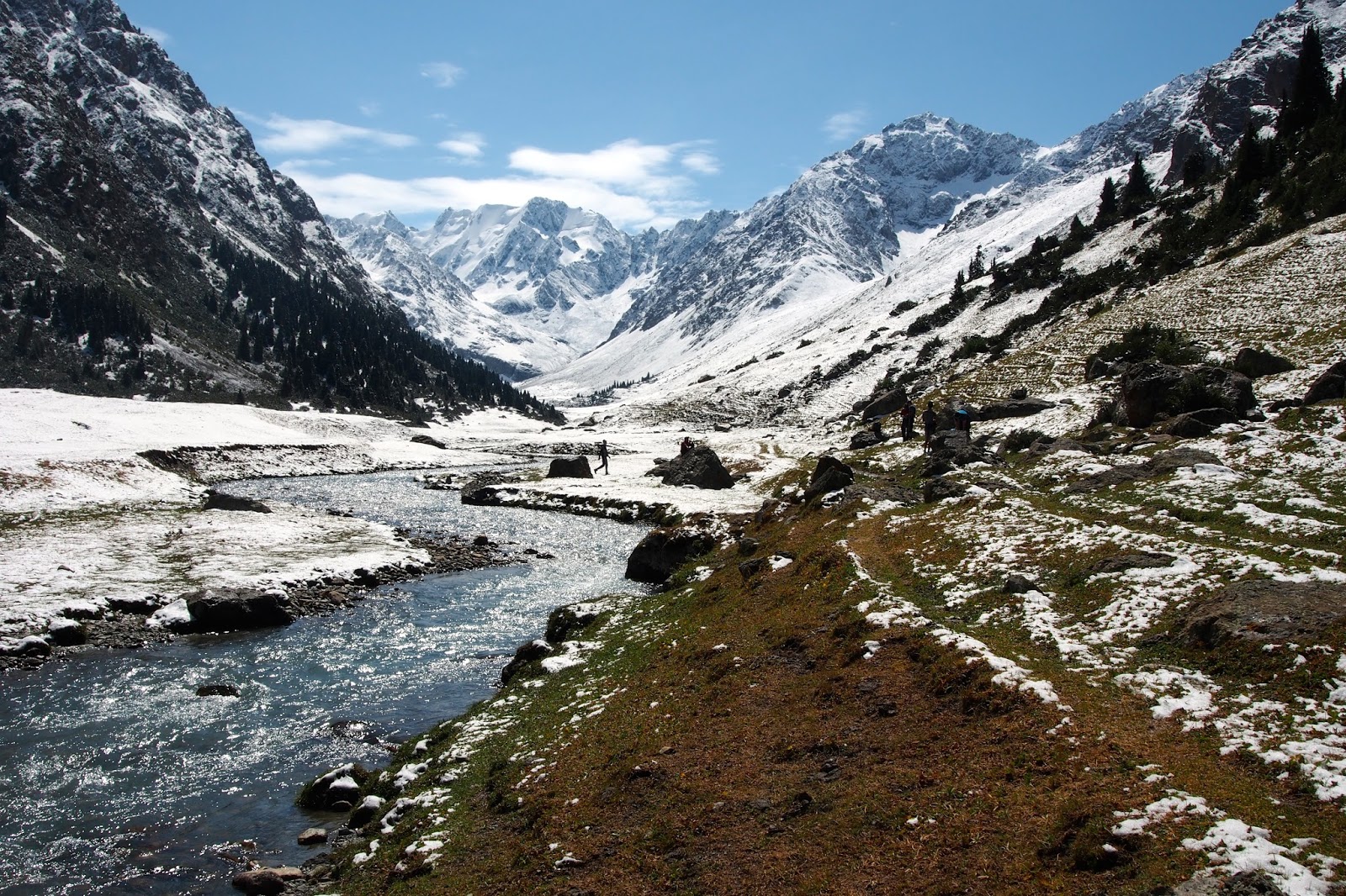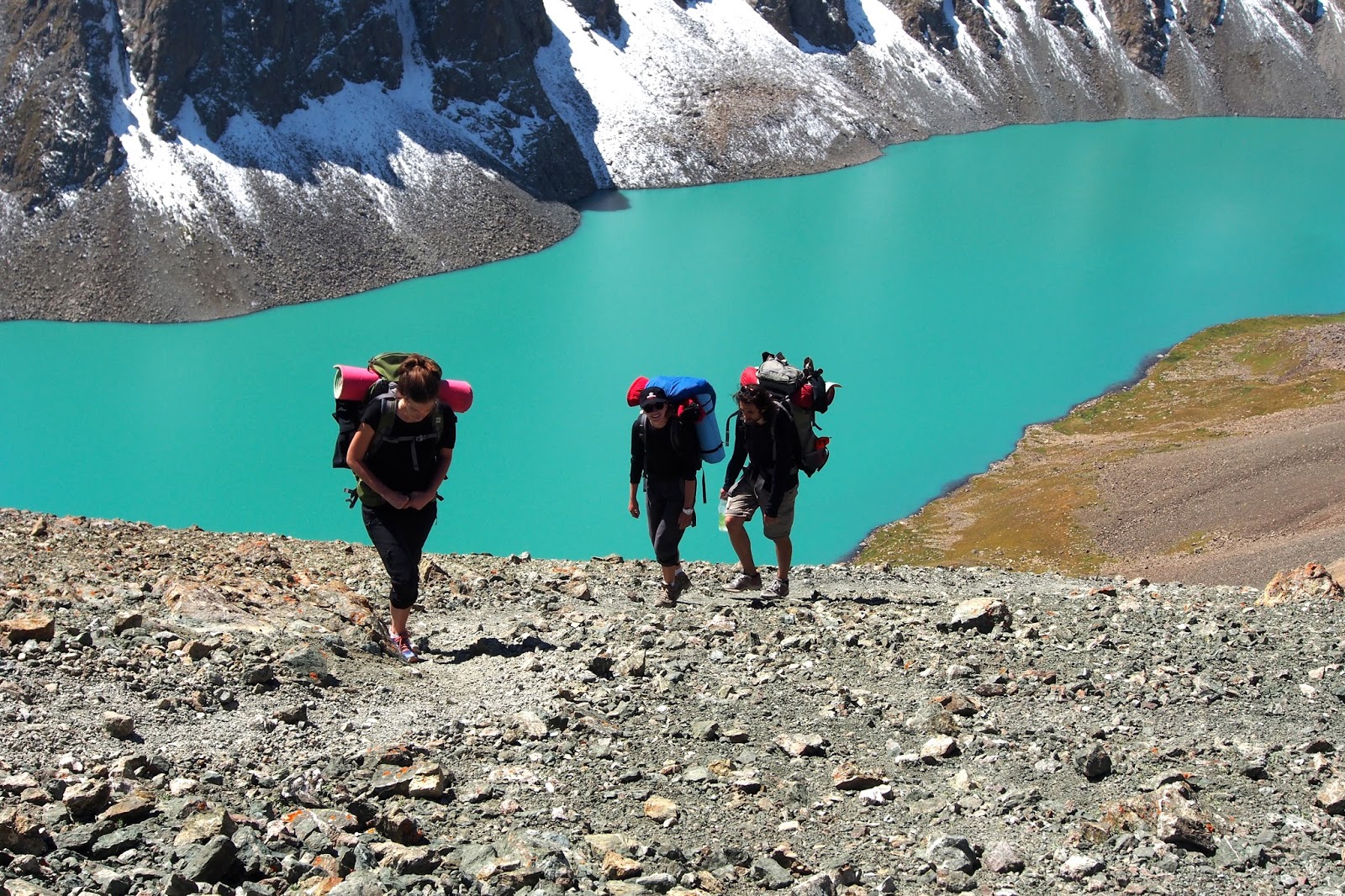 Byli jsme teprv ve výšce 2200 m a čekal nás výstup do sedla Teleti ve výšce 3700 m. Pomalu jsme stoupali údolím a pomalu se začínal objevovat sníh. Potkali jsme skupinku turistů, kteří se předchozí den neúspěšně pokusili o přechod sedla a teď se vraceli zpět do Jeti Oguz.