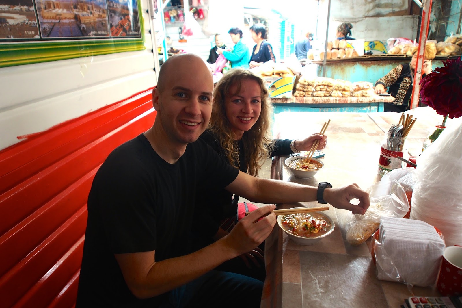Pak jsme došli na trh, nakoupili jídlo a najedli se nějaké nudlové polívky.