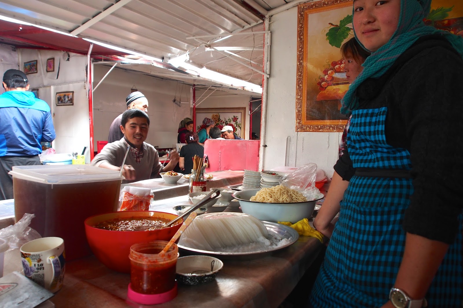 Večer jsme se šli najíst (dal jsem si knedlíky plněný masem – manty), potkali jsme starý kanadský pár, které jsme viděli už v karakolském údolí. Po cestě na hotel jsme akorát koupili pivo.