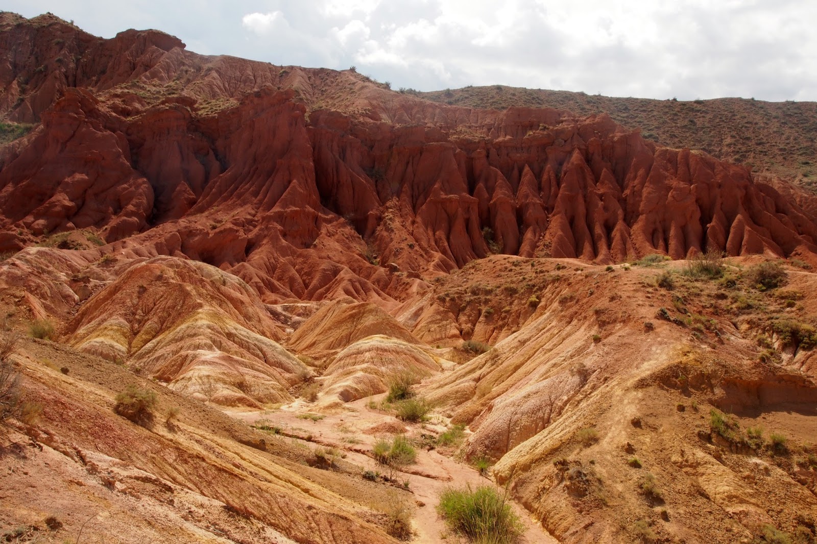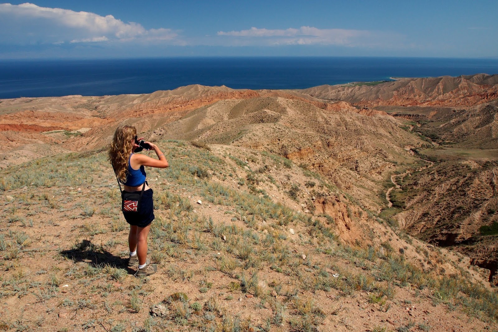 V 8 jsme se nasnídali a asi 9:30 už jsme na hlavní silnici čekali na maršrutku, co by nás vzala 7 km na západ kolem jezera do Skazky, neboli Fairy Tale Canyon, což je takový zmenšený Grand Canyon – krásné červené skály.