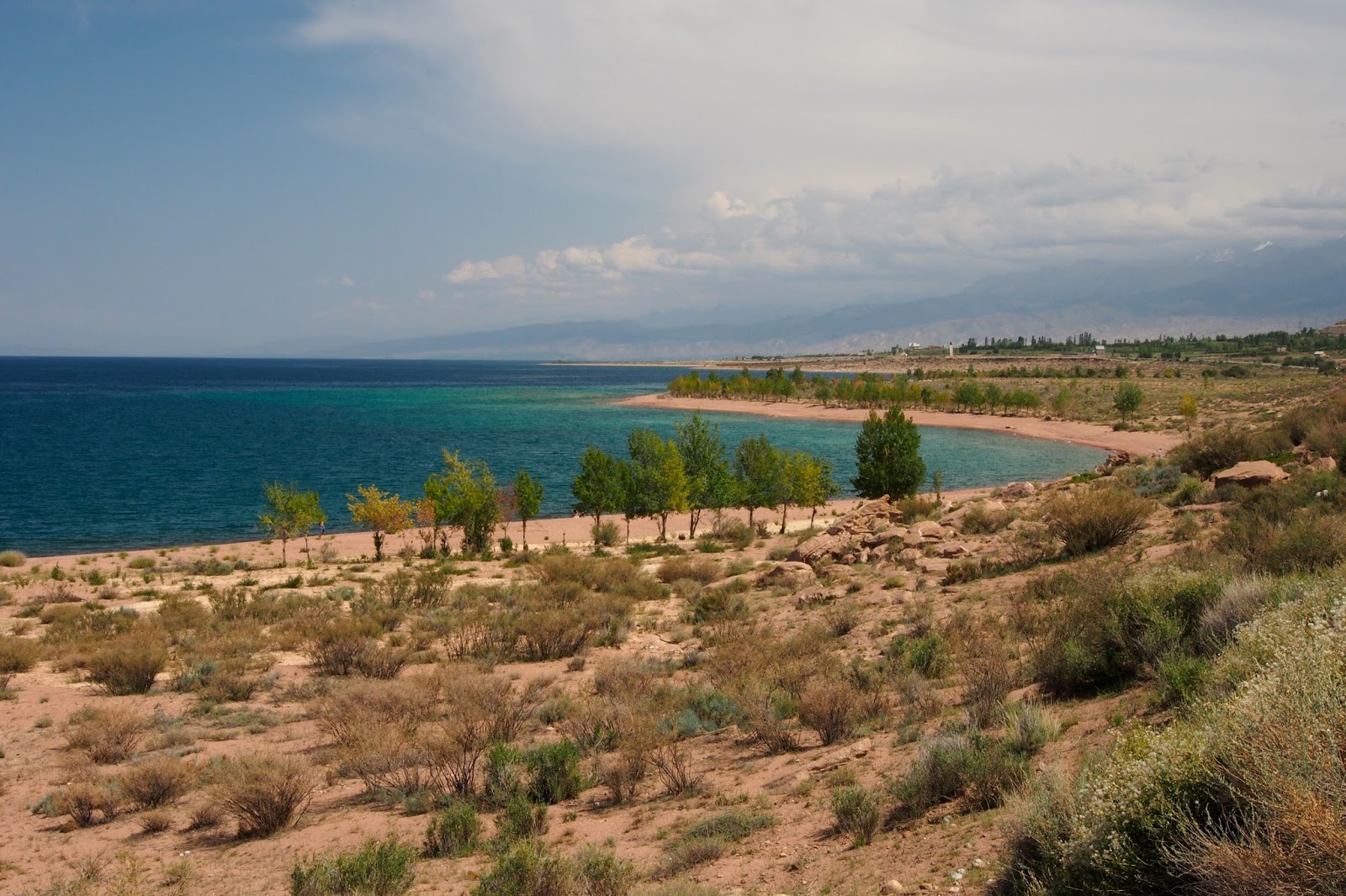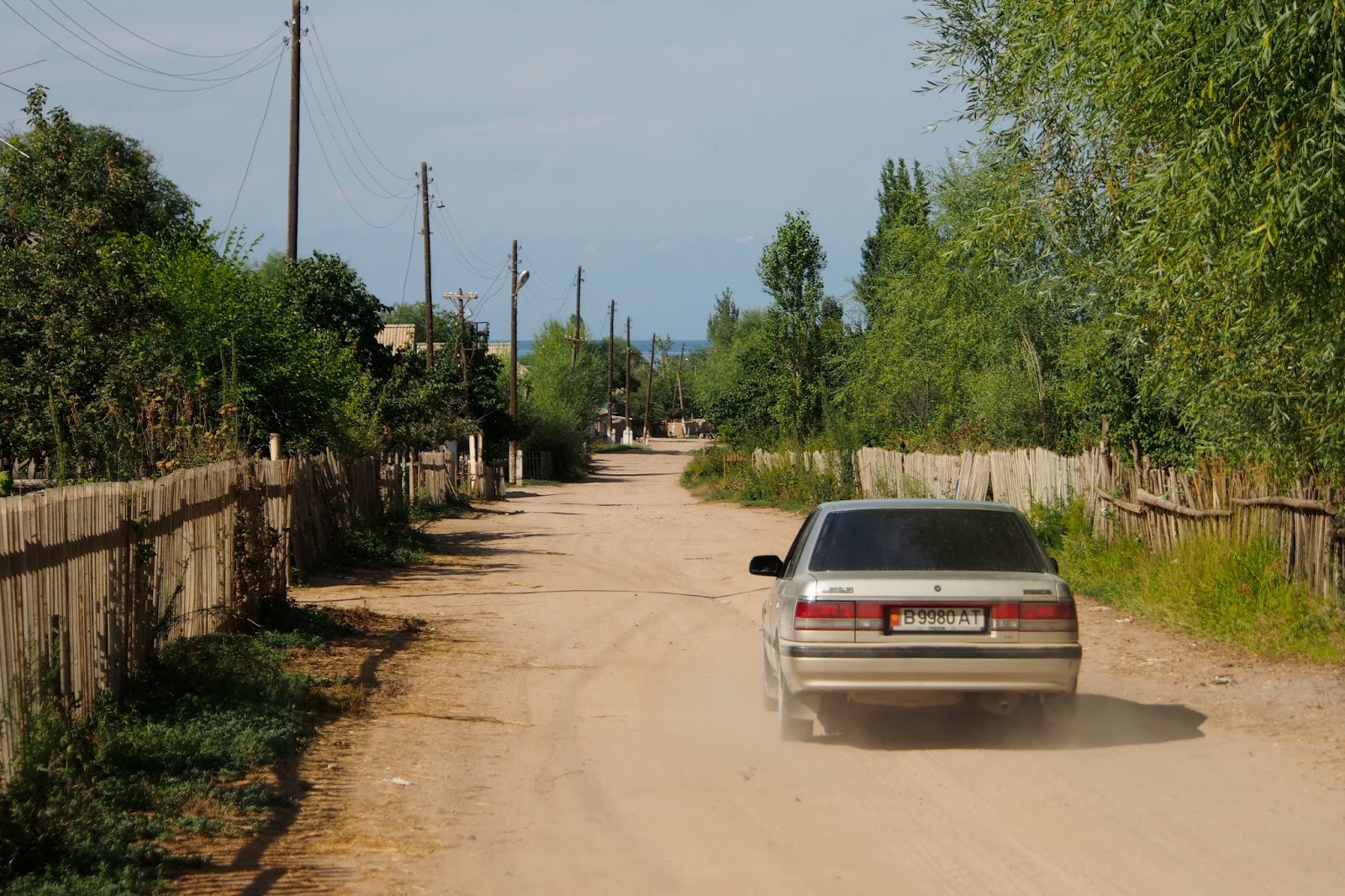 Ráno bylo těžké. Přece jen je to pro mě nezvyk – měl jsem tak 3,5 piva a pak 4 panáky meruňky (ne-li 5!). Snídani v 8 jsem ještě zvládl, ale pak jsem Kami řekl, že si beru time out a ležel jsem do 12 hod. Pak jako by mávl kouzelným proutkem a už jsem se cítil ok. Sbalili jsme se a přejeli podél jižního pobřeží jezera do vesnice Tosor, kde nám bratr Aigulu (majitelky guest housu) domluvil ubytování. Byly to 2 hodiny maršrutkou (120 som).