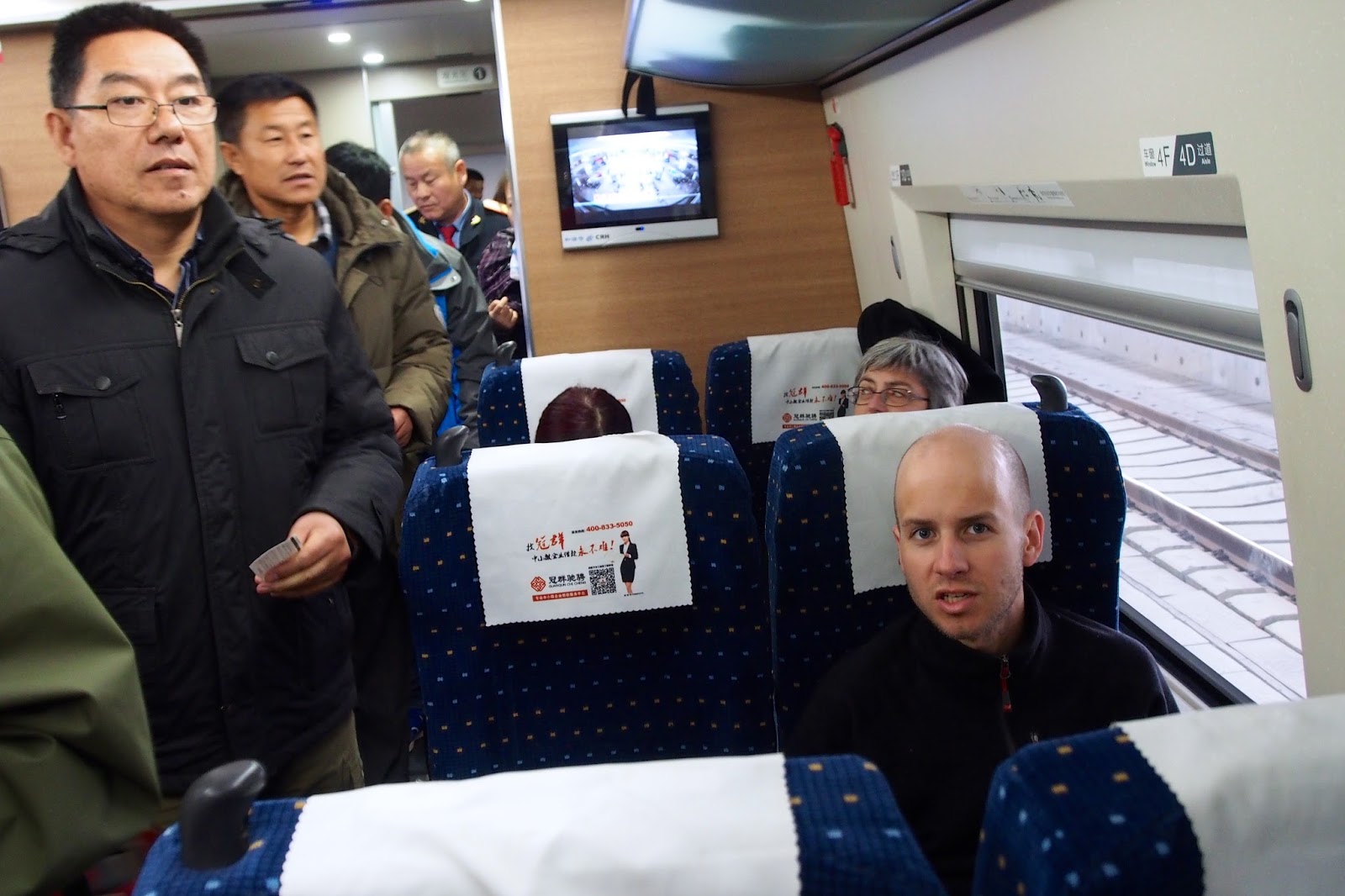 Když byl čas, brána se otevřela a po kontrole jízdenky jsme se ocitli na nástupišti, kde už čekal vlak. Docela podobnej jak šinkanzen v Japonsku. Seděli jsme až v posledním vagónu. Místa bylo dost. Rozjeli jsme se přesně na čas. Chvilku po startu jsem si všiml, že jak jsme opustili nádraží, tak kolem nás bylo jen staveniště – všechno se tu buduje a pouze asi ze 2 nástupišť vedly koleje, u ostatních zatím nic.