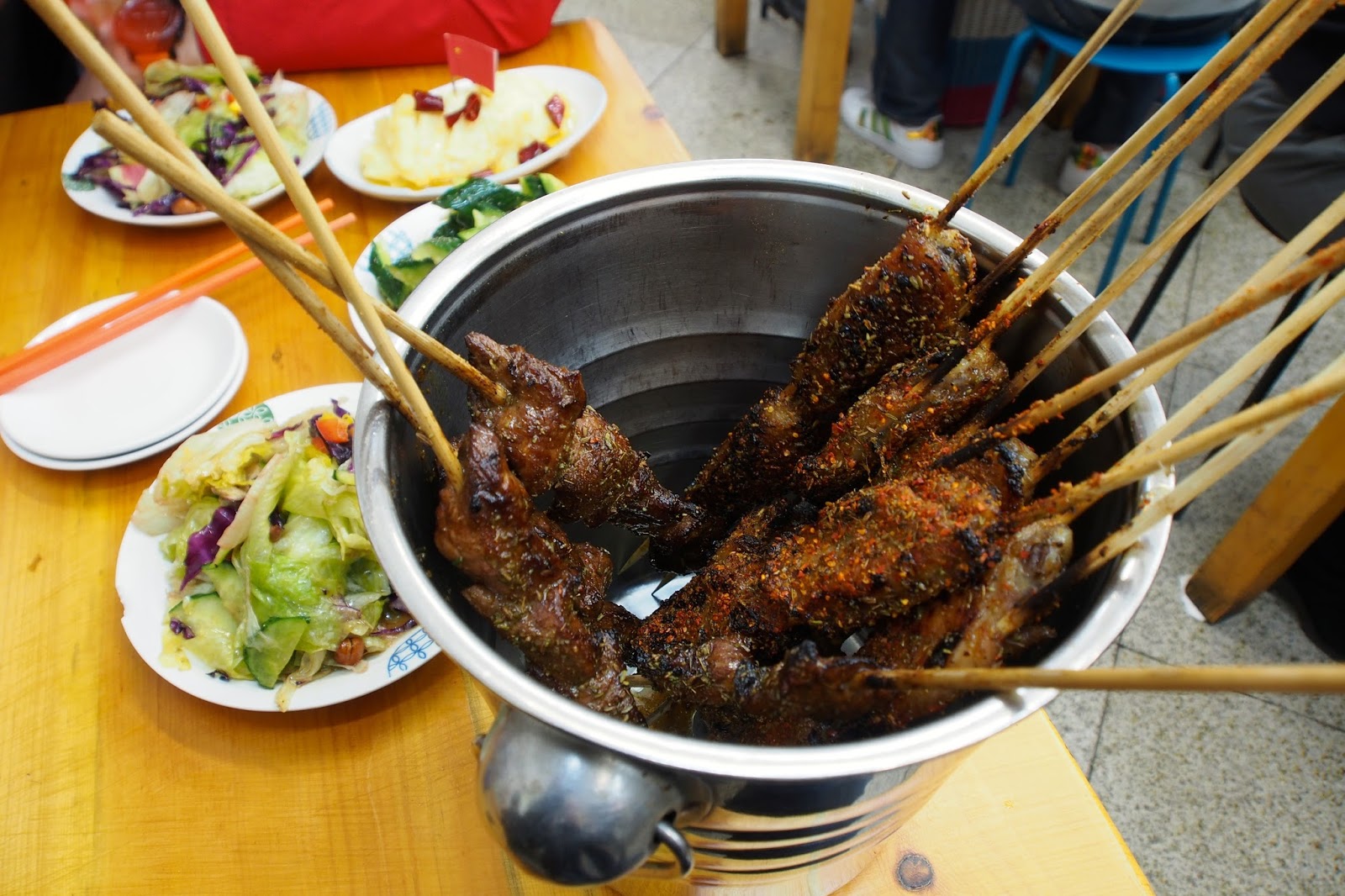 Pomalu jsem se vrátil poblíž našemu hostelu a šel jsem do naší oblíbené pekárny. Koupil jsem si nějaké dobroty a když už byl pomalu čas vyrazit k hostelu, kde jsme s Jirkou měli v 5 sraz, tak mi od něj došla sms, že to nestíhá a že spíš až v 6. Když Jirka v 6:15 konečně dorazil, tak jsem se dozvěděl, že potkal nějakou Číňanku a zdržel se s ní. Rozhodli jsme se jít na večeři do restaurace naproti hostelu – chtěl jsem tam jít už od prvního dne, protože tam bylo vždycky plno. Jejich specialita byly kuřecí křidýlka a pár dalších věcí grilovaných na špejlích. Vypadalo to, že se objednává po jedné špejli, tak jsem si objednal 1 porci hovězího a 2 kuřecích křidýlek. Dorazil plnej kyblík. Jirka chtěl vege, takže mi s tím nepomohl. Bojoval jsem statečně, nechal jsem tam jen jeden poslední kousek.