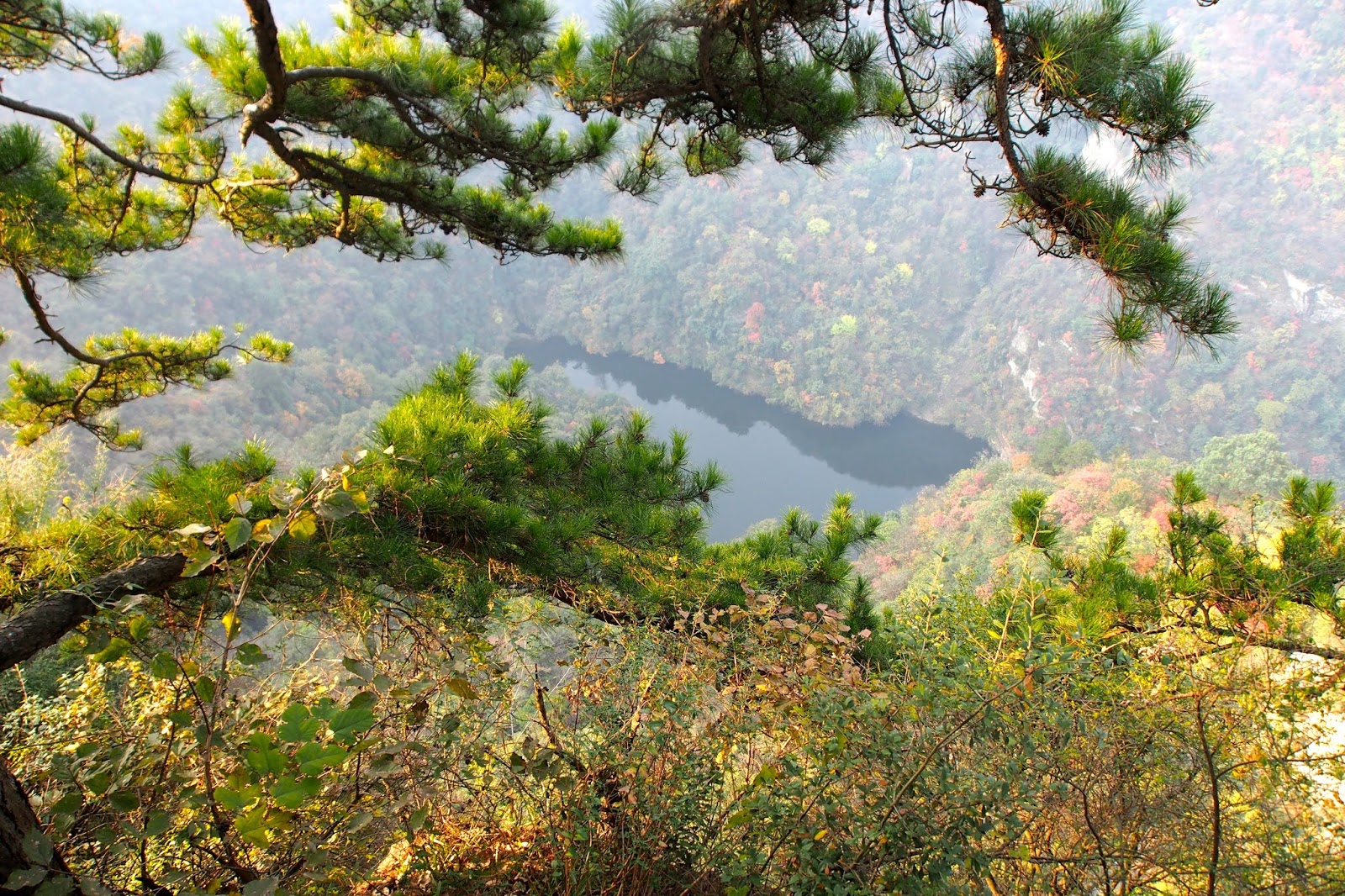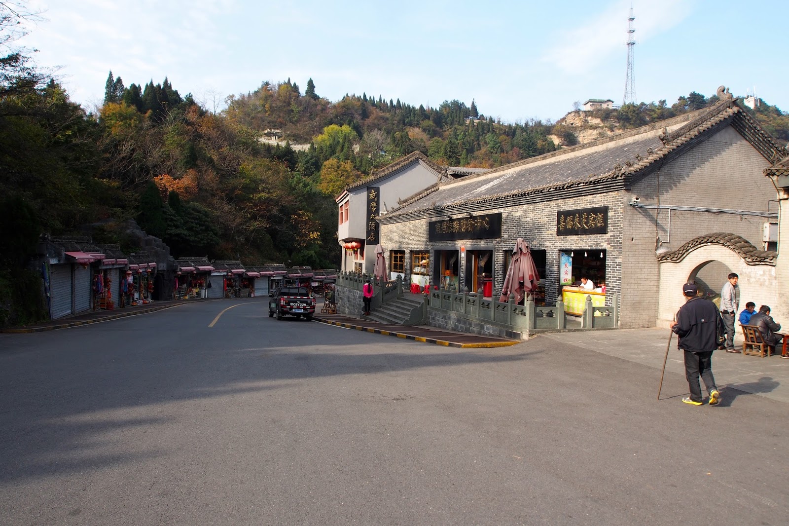 Za další půlhodinu jsme v cíli. Ale nám se to teda nezdálo – chtěli jsme až do hor a řidič nás vysadil na autobusovém stanovišti dole ve městě. Ale nic, nedá se nic dělat, dál už nás nevezme. Tak jsme teda vylezli z auta, rozloučili se a dál šli po svých. Došli jsme k bráně do národního parku. A jen jsme koukali – samý obchody, všechno nově postavený, turismus tady frčí. Došli jsme k informačnímu centru. Byla tam obří hala, kde se prodávaly lístky. Ale žádní lidi – jsme tu mimo sezónu. Zeptali jsme se, kolik to teda stojí. 240 juanů (asi 900 Kč). No tak to je teda pálka! A že v ceně jsou místní zelené autobusy, co jezdí nahoru do hor. Nahoře ve vesničce je spousta hotelů, kde se dá ubytovat. Prvotní šok z vysoké ceny následovalo smíření s tím, že tady prostě utratíme velký peníze. Však co, jsme na dovolené, tak se trochu rozšoupnem! Řekl jsem Jirkovi, že bych rád saunu a že když už, tak už, že si můžem za hotel trochu připlatit. Skutečnost nakonec byla trochu jiná (v Respektu by napsali složitější).