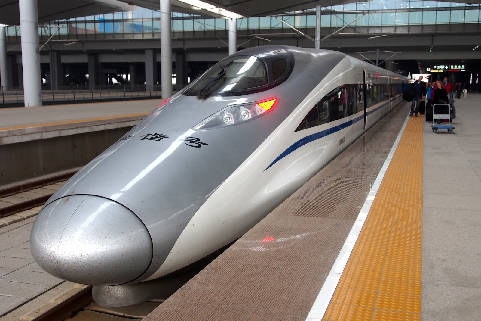 Když byl čas, brána se otevřela a po kontrole jízdenky jsme se ocitli na nástupišti, kde už čekal vlak. Docela podobnej jak šinkanzen v Japonsku. Seděli jsme až v posledním vagónu. Místa bylo dost. Rozjeli jsme se přesně na čas. Chvilku po startu jsem si všiml, že jak jsme opustili nádraží, tak kolem nás bylo jen staveniště – všechno se tu buduje a pouze asi ze 2 nástupišť vedly koleje, u ostatních zatím nic.