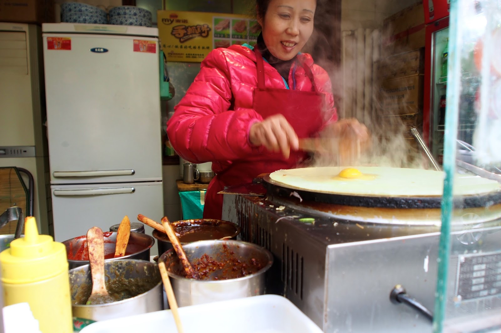Ráno v Si’anu prodávali na ulici spoustu lákavých jídel, ale bohužel to bylo všechno s masem a já rád sladkou snídani.