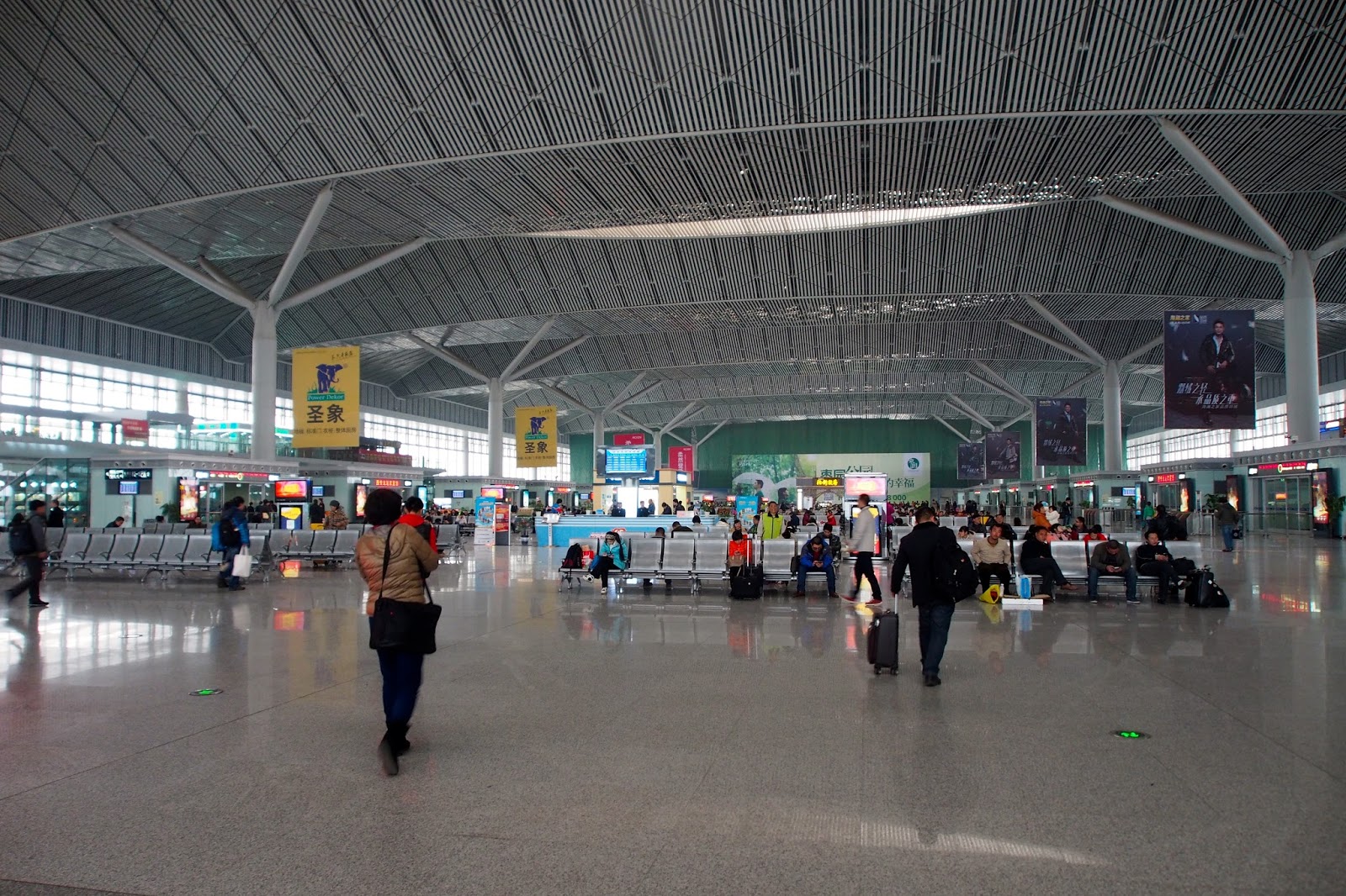 Po pár dalších hodinách jsme někdy ve 2 dojeli do Si’anu. Rovnou jsme šli na metro a přejeli na konečnou stanici – nádraží pro rychlovlaky. Nádražní hala připomínala odletovou halu na letišti. Bylo to obří a všechno zářilo novotou. Než jsme vstoupili dovnitř, museli jsme projít rentgenem (to je v Číně na spoustě míst). Jirku vyhmátli se švýcarským nožíkem (mojeho si nevšimli). Co myslíte, vyhodili mu ho? Ne, pán mu ho zabalil do tvrdého papíru a oblepil izolepou a instruoval Jirku, aby to určitě po cestě nerozbaloval! Vtipné.