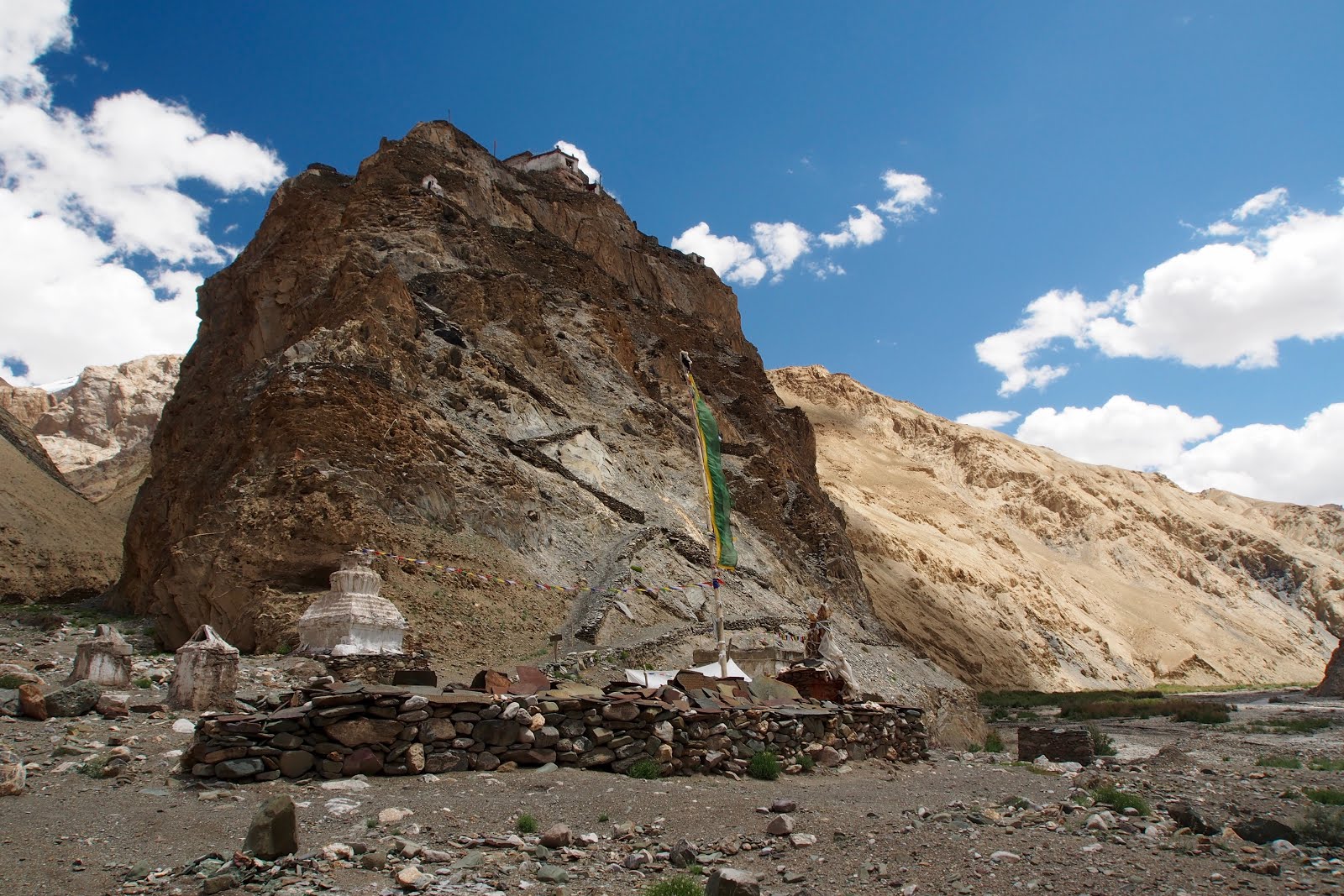 Budíček jsem měl na 7, vstal jsem v 7:30. Rychle dobalit a přes most do All Day Breakfast na snídani. Byli hrozně pomalí, takže jsem se trochu zdržel. Pak ještě nakoupit vodu a můžu vyrazit. Destinace: Spituk. Původně jsem měl jet místním autobusem, ale to jsem nakonec zavrhl, protože bych musel jít přes celý město na stanoviště autobusů a kdo ví, jak dlouho bych pak musel čekat. Takže jsem se místo toho rozhodl pro stop. Po chvilce chůze mi zastavil místní stavař, co se učil řídit – auto měl teprv měsíc. Jel velice opatrně, takže jsem se ani nebál. Vyhodil mě u odbočky do vesnice z hlavní silnice. Dál jsem musel pěšky.