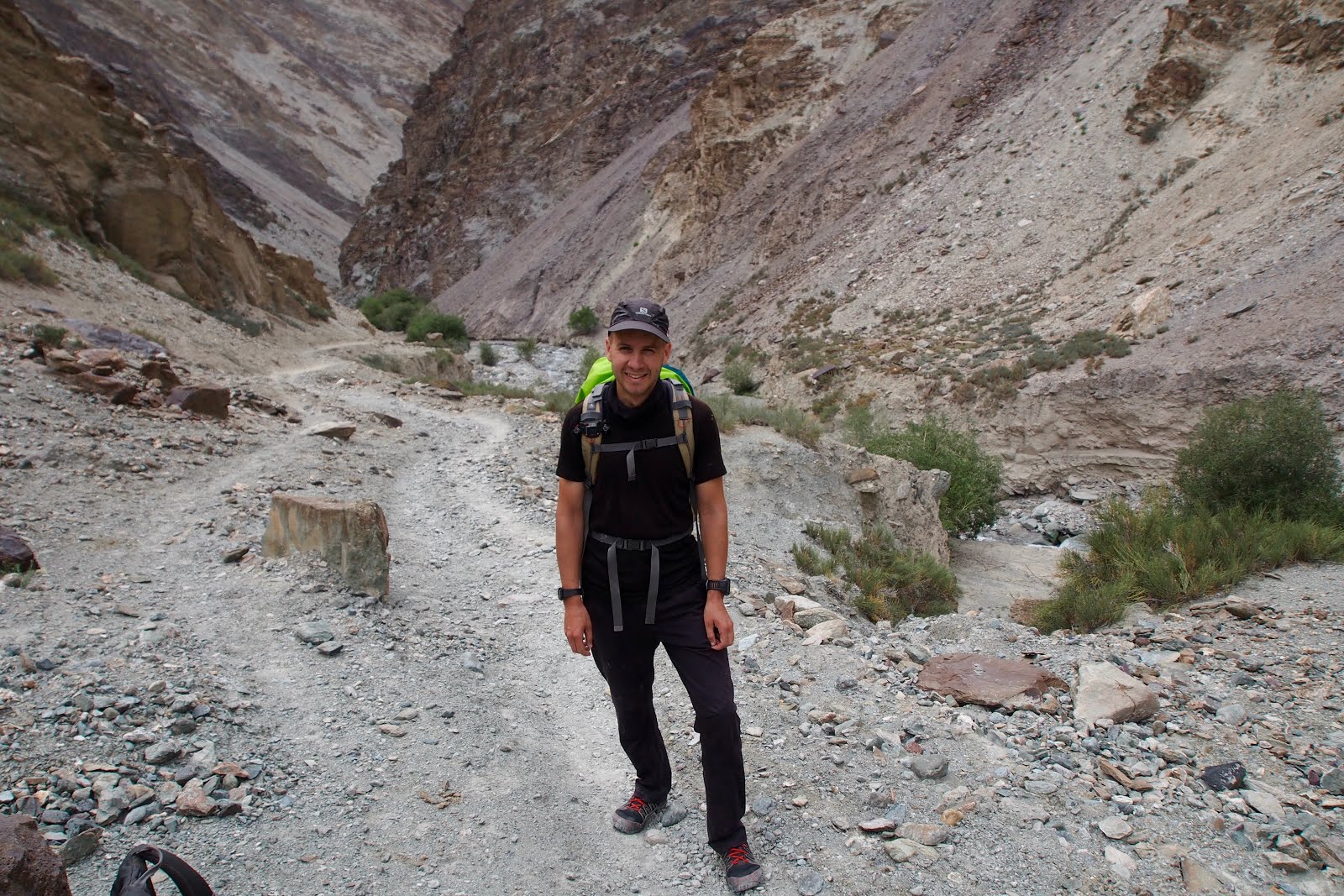 Toto je uprostřed cesty z Šinzu do Skyu – fotili mě Francouzi, které jsem dohnal. Jde se takovým kaňonem, který vyústí v hlavním údolí.