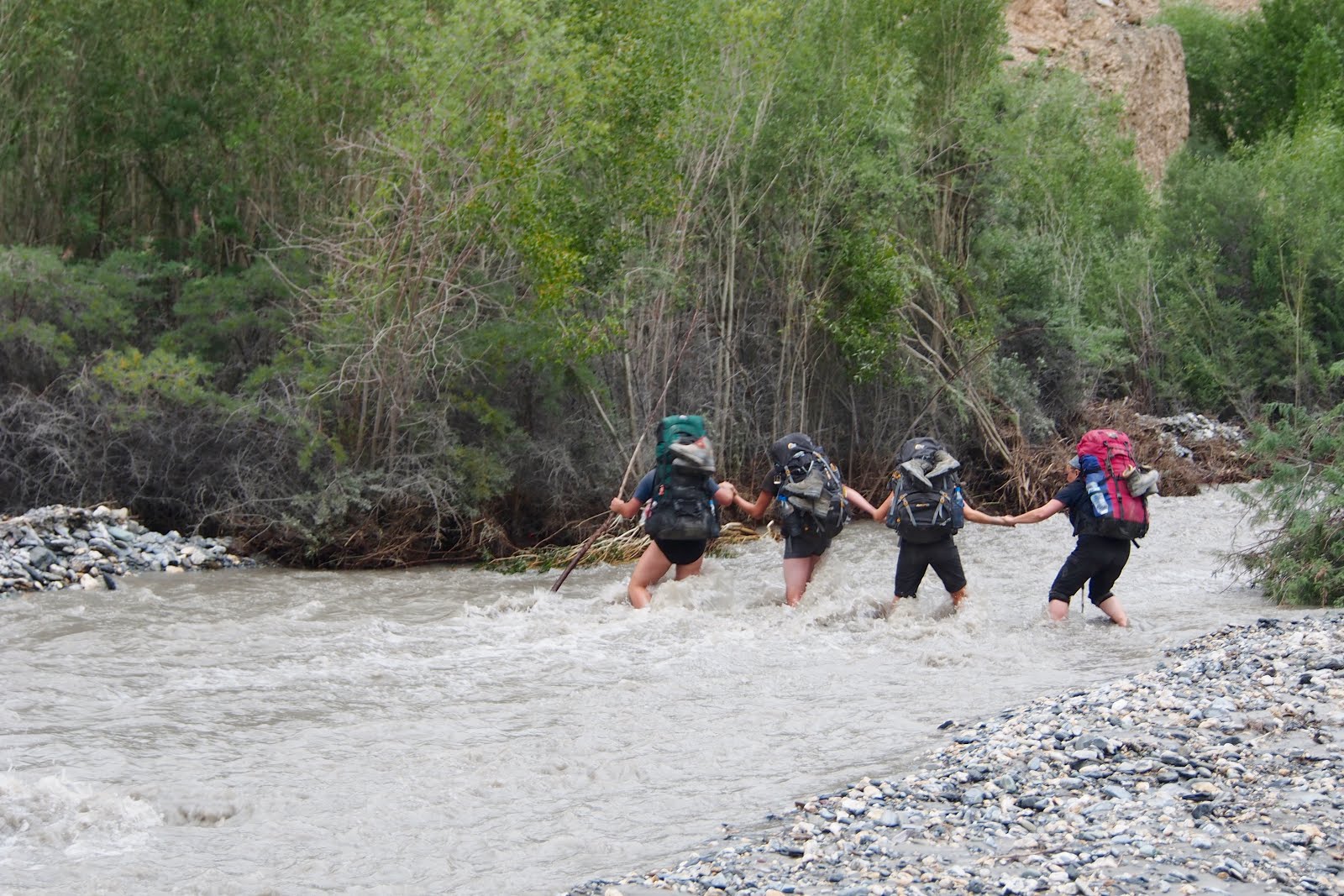 U jednoho místa, kde se musela přebrodit řeka, potkávám německou rodinku – Jens, Martina, Ailine (14) a Robin (17). Všichni 4 se drželi za ruce a brodili společně.