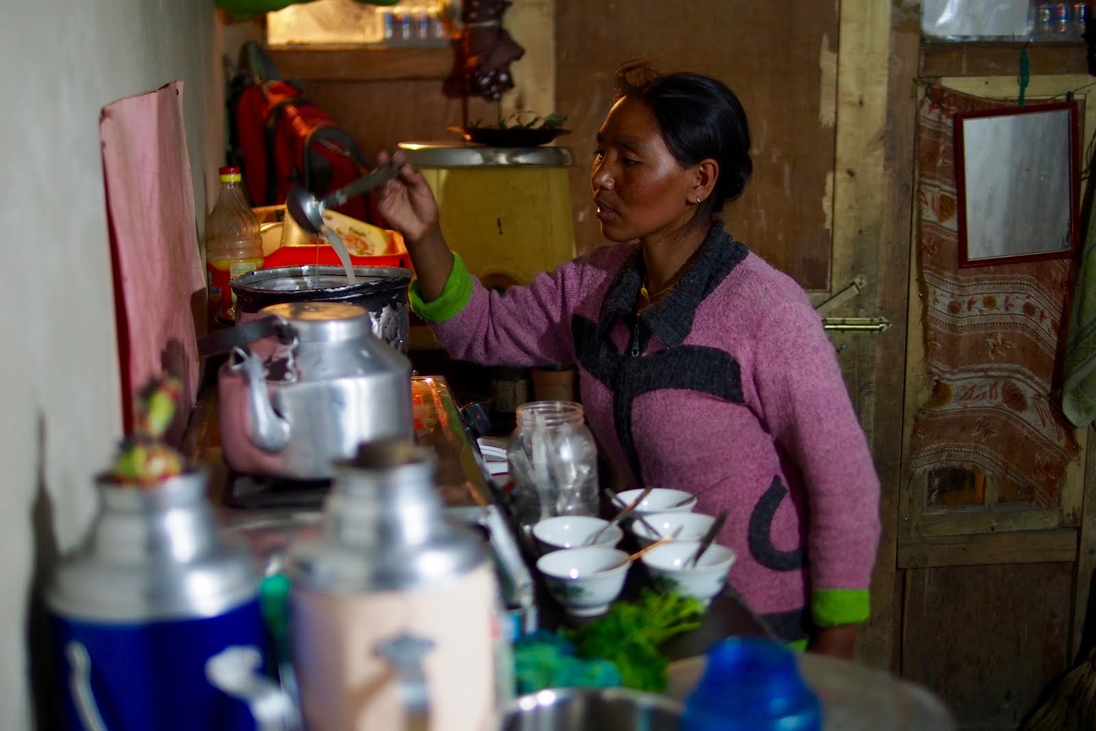 V Šinzu lezu hned do prvního „homestay“ a tam už se připravuje večeře (momo) za pomoci 2 hostů – francouzského páru – Anne a Antoine. Antoine je veterinář, specialista na kravský kopyta (taky jsem netušil, že něco takovýho existuje). Příjemně jsme si popovídali.