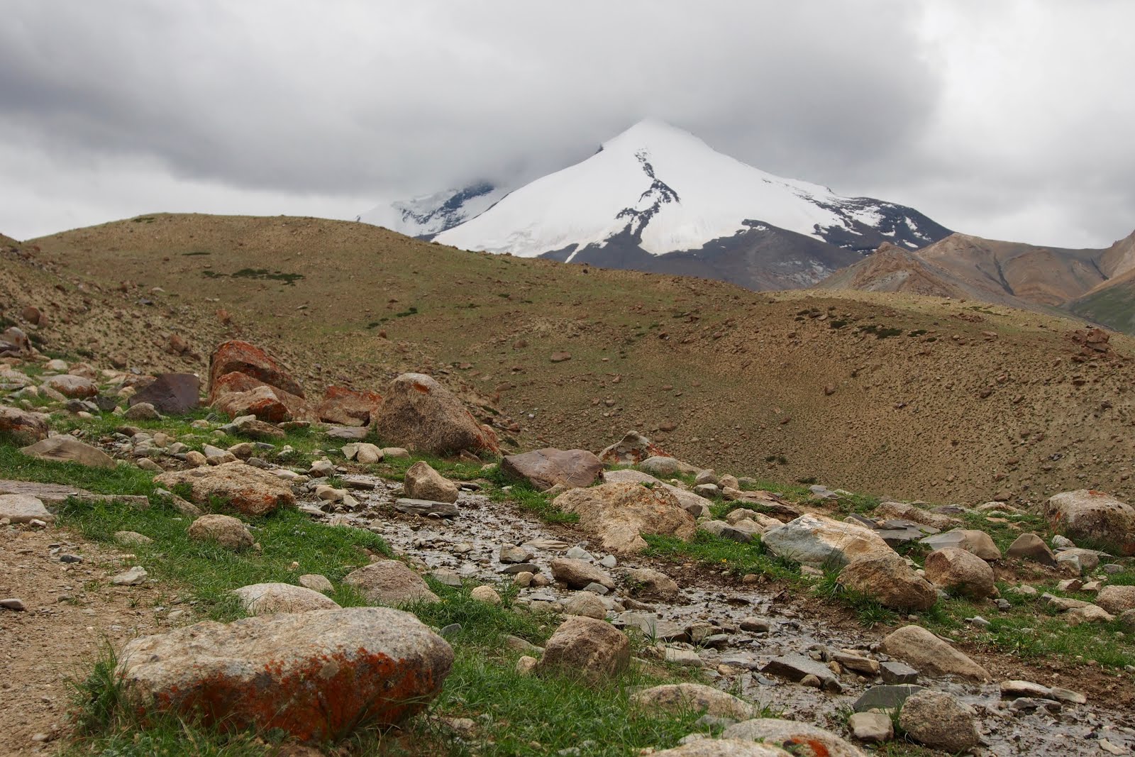 Na startu výletu v Žinčenu bylo lidí mraky, ale nejspíš šli všichni na Stok-la, protože dál už jsem potkával jen velice málo lidí. Startoval jsem v 10:40. Šlo to celkem hladce. V čase 2:40 jsem došel do osady v 4000 m, tam jsem dohnal 3 Francouze, které jsem měl na dohled už nějakou dobu, ale furt se mi nedařilo stáhnout jejich náskok.