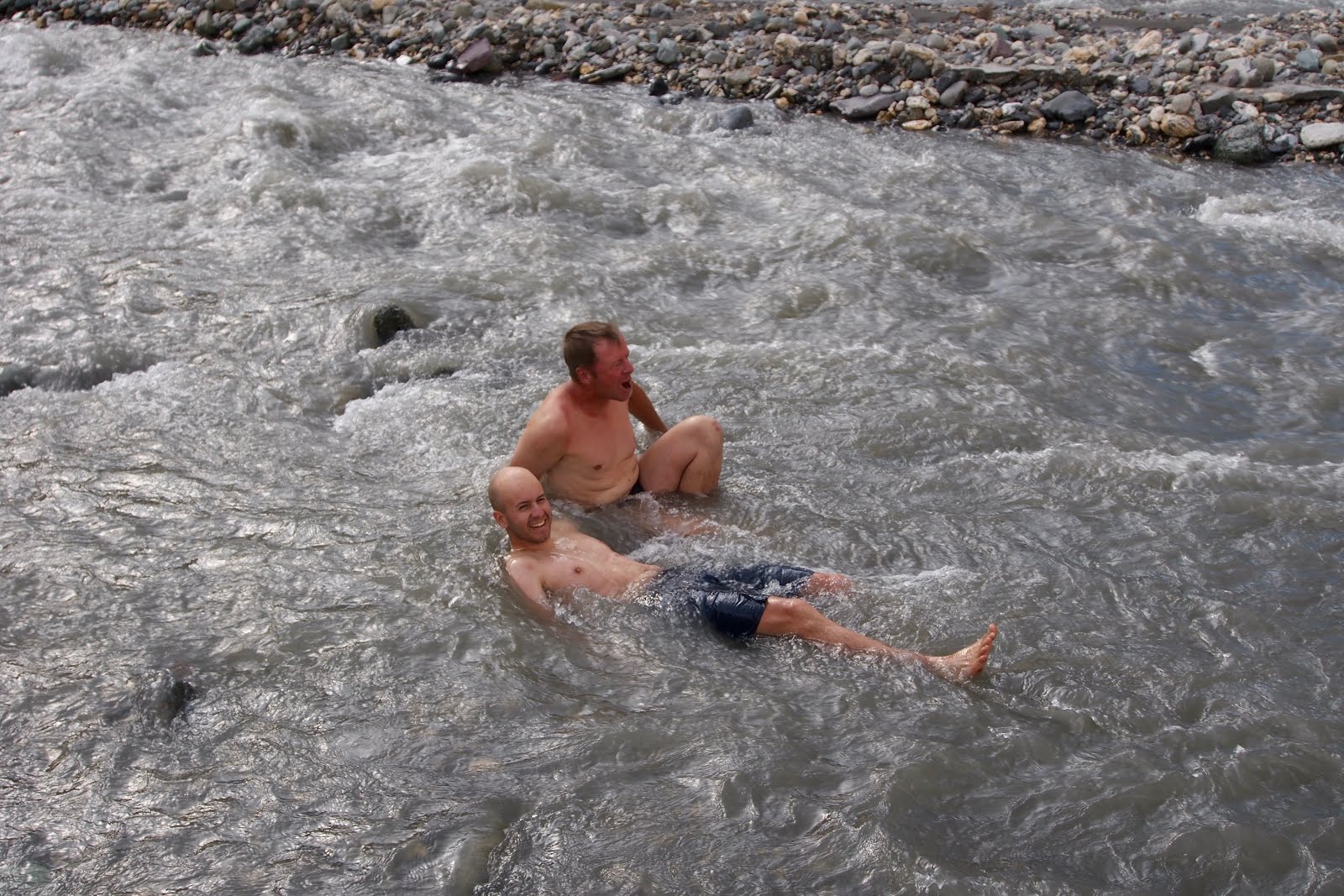 U jednoho místa, kde se musela přebrodit řeka, potkávám německou rodinku – Jens, Martina, Ailine (14) a Robin (17). Všichni 4 se drželi za ruce a brodili společně.