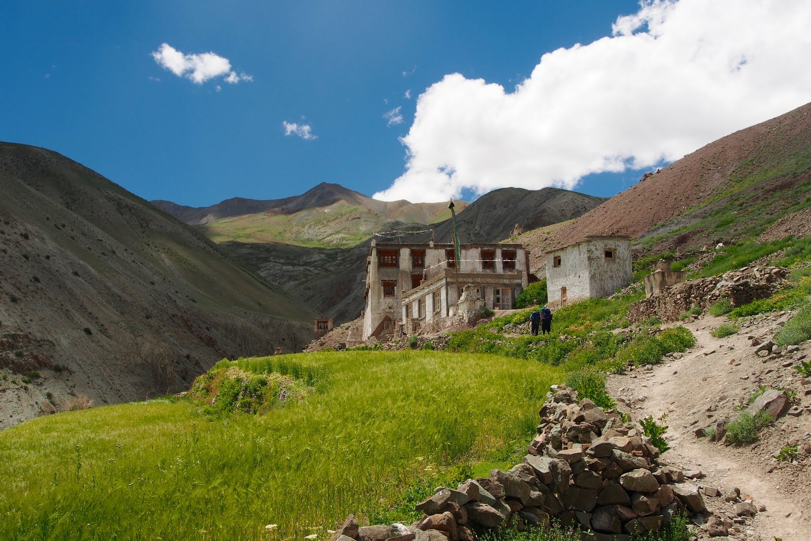 Musím říct, že na tomto treku jsem měl velké štěstí v tom, že to bylo krátce po povodních, takže tam nebyli skoro žádní turisti. Od Stenzina jsem se později dozvěděl, že další týden tam vedl další turisty a už tam bylo lidí mraky – v jednom homestay třeba spalo 30 lidí naráz. V oficiální turistické informační kanceláři mi řekli, že je ten trek zavřenej a že se tam nedá jít. V komerční agentuře mě ale ujistili, že už je to ok a není problém. To byla pravda tak napůl – vinou sesuvů půdy a utrhaných mostů byla cesta někdy dost obtížná a několikrát za den bylo nutné se vyzout a přebrodit řeku. Ale aspoň to bylo větší dobrodružství.