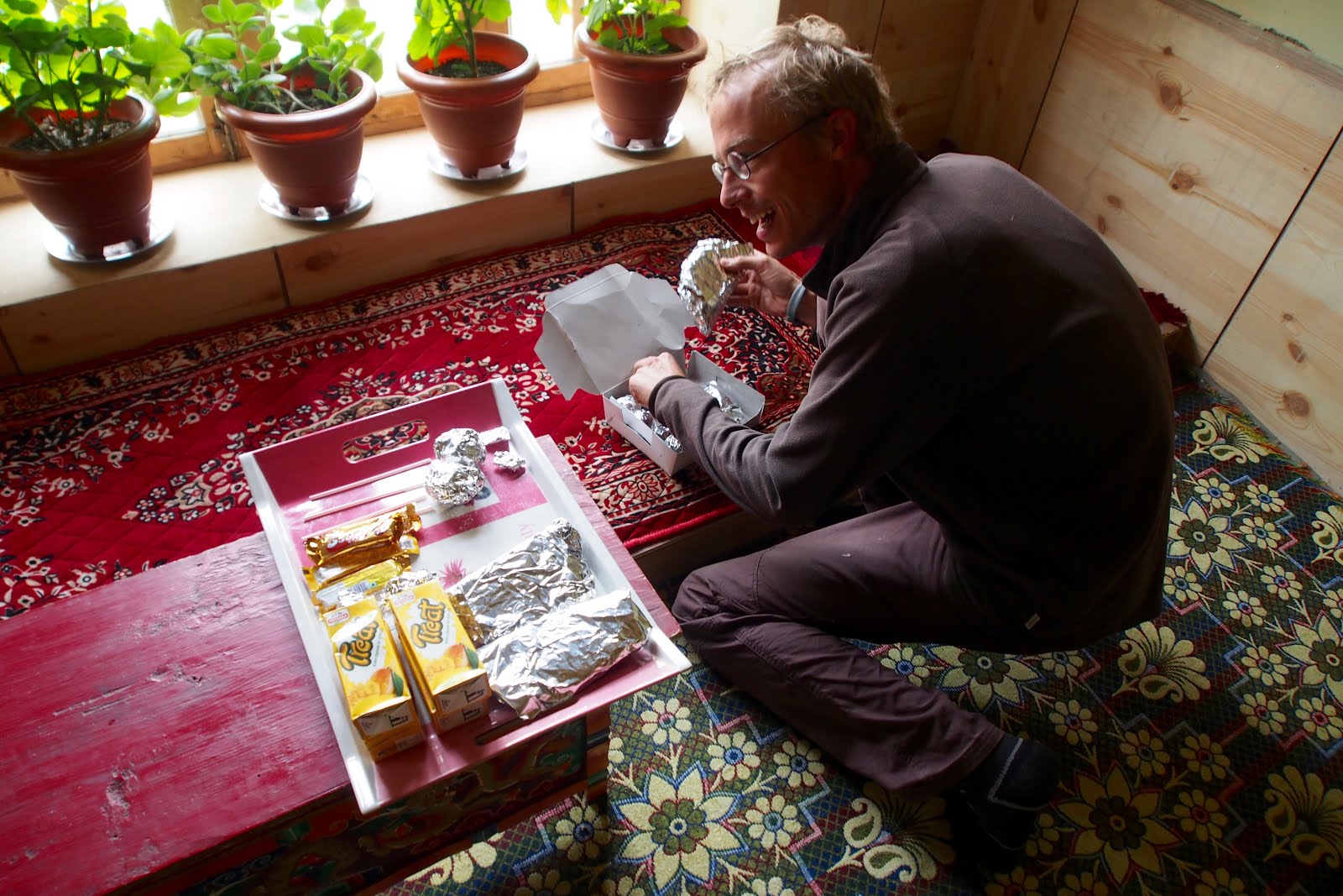 V každém homestay člověk po snídani dostane balíček na cestu. Většinou je tam kus buchty či chleba, sýr, uvařená brambora, pití, někdy vejce.