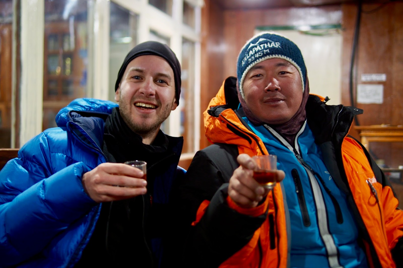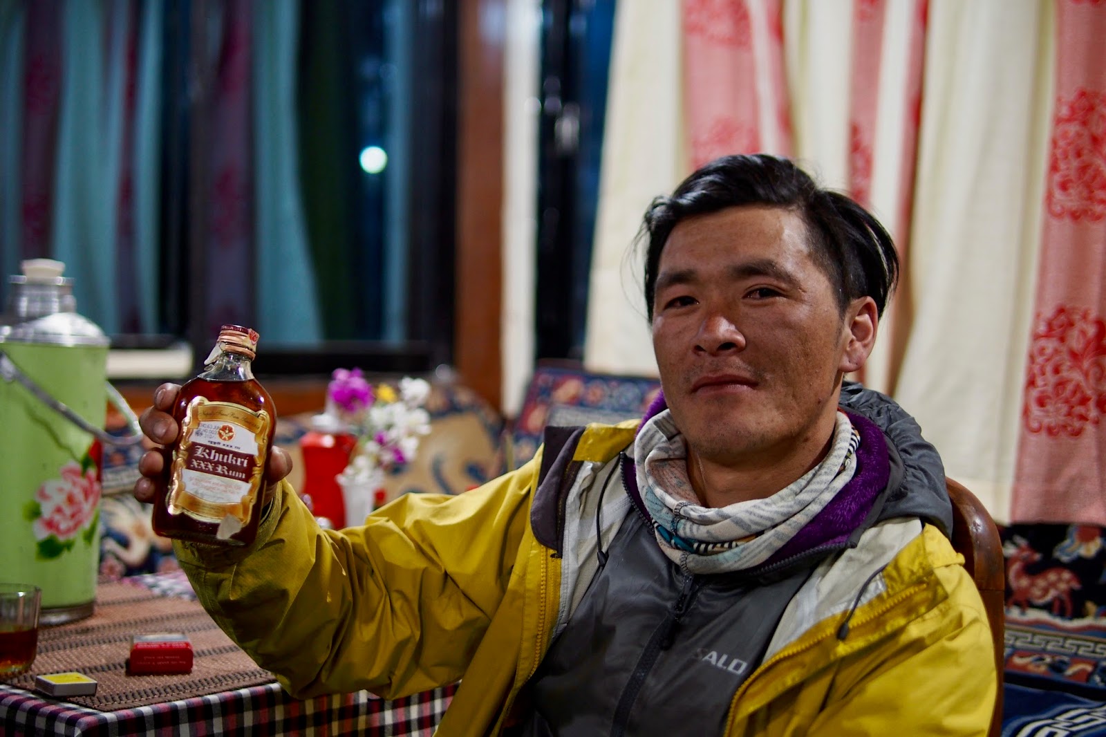 Nakonec se nám ten večer docela rozjel. Začaly se nosit lahvičky rumu, ty stejné, co jsme popíjeli v Namche na Silvestra. Ukázalo se, že Sange Sherpa si rád popije – prý i na Everestu ve výškových táborech. Říká, že pít a kouřit začal před třema lety.