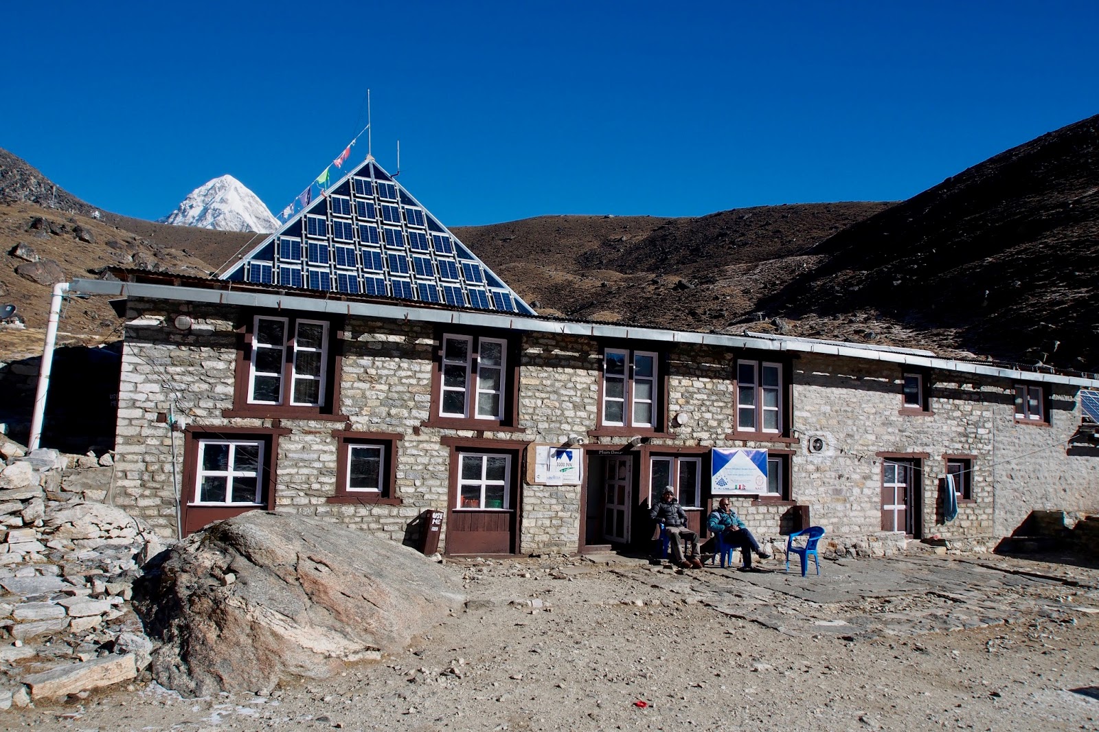 Fakt se mi ta Pyramida líbila, vypadá to spíš jak horská chata v Alpách než místní guest house. Rozvody elektřiny i topení. Ovšem to vytápění nějak nefunguje – pouze jedno topení v jídelně a jedno v koupelně, ale jen když je hezky a jen slabo. Je to škoda. Chtělo by to, aby tu někdo postavil pořádnou moderní horskou chatu.