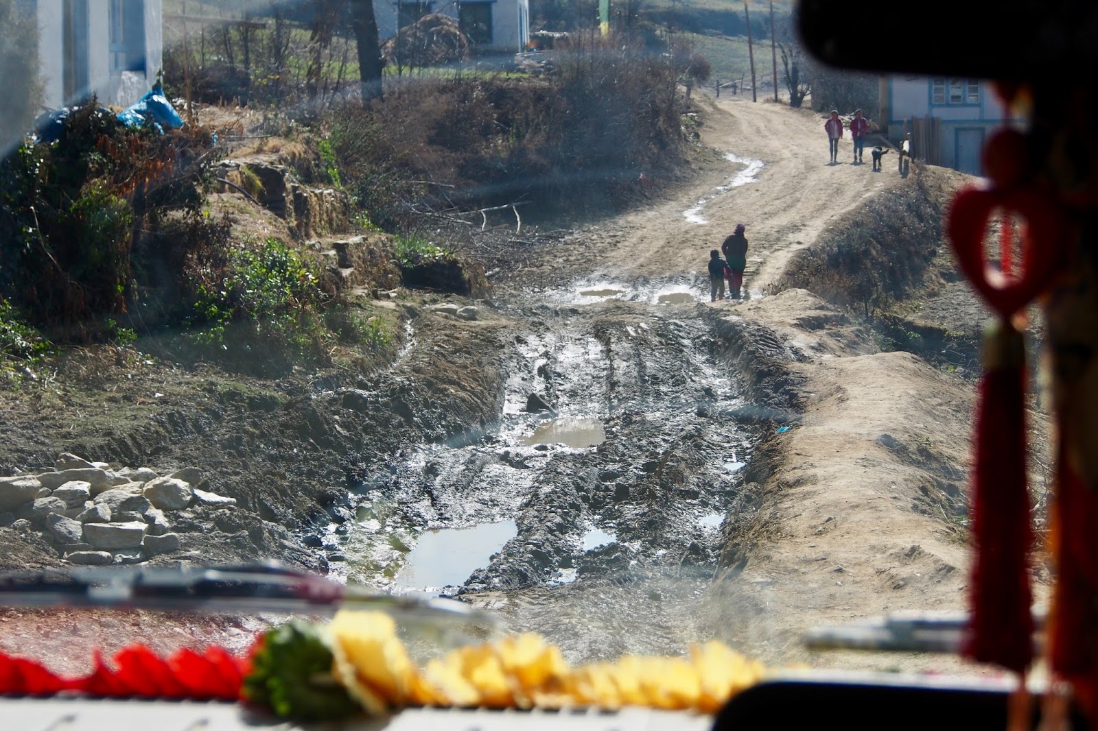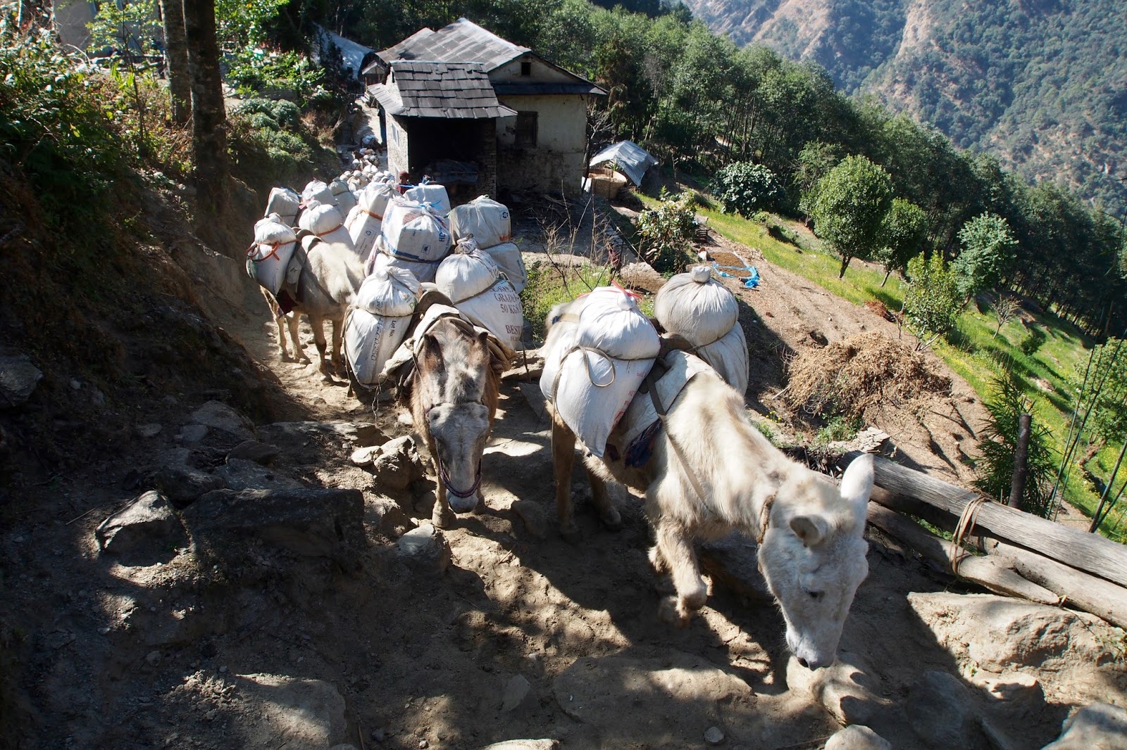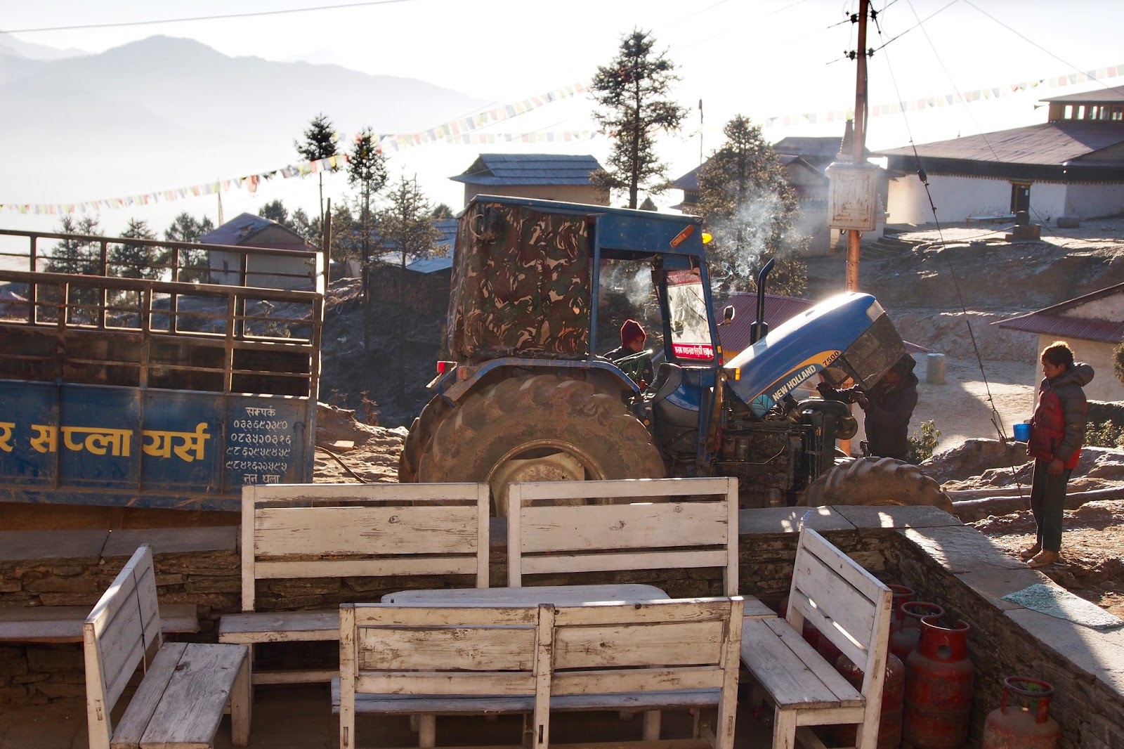 Nakonec to dopadlo dobře. Výrostci asi po hodině a půl zaplatili a šli ven, kde ještě museli složit náklad, který přivezli traktorem. Až sem totiž vede nová cesta (která je teda dost šílená a velkou část roku nesjízdná) a odsud chodí už jen osli.