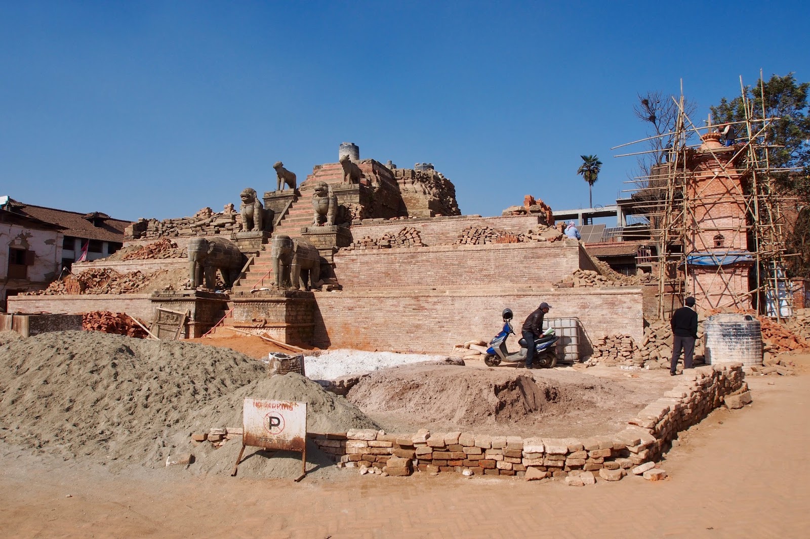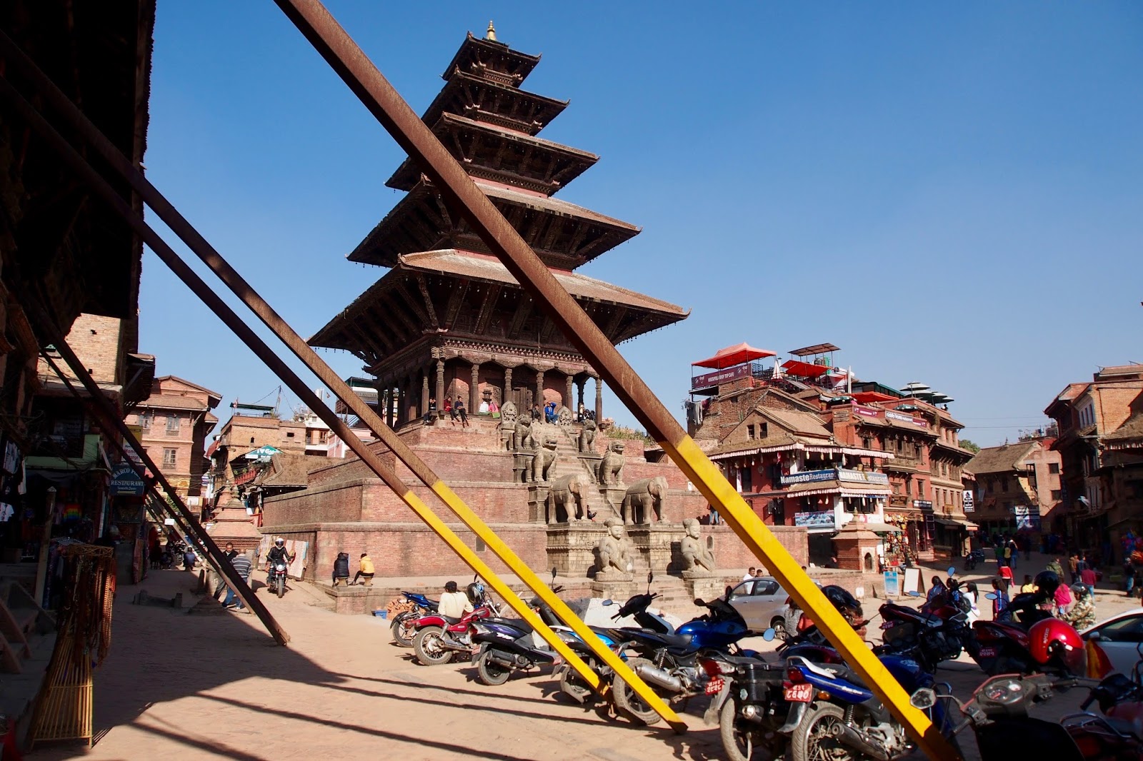 … a toto je nejvyšší věž v Bhaktapuru a ta kupodivu přežila.