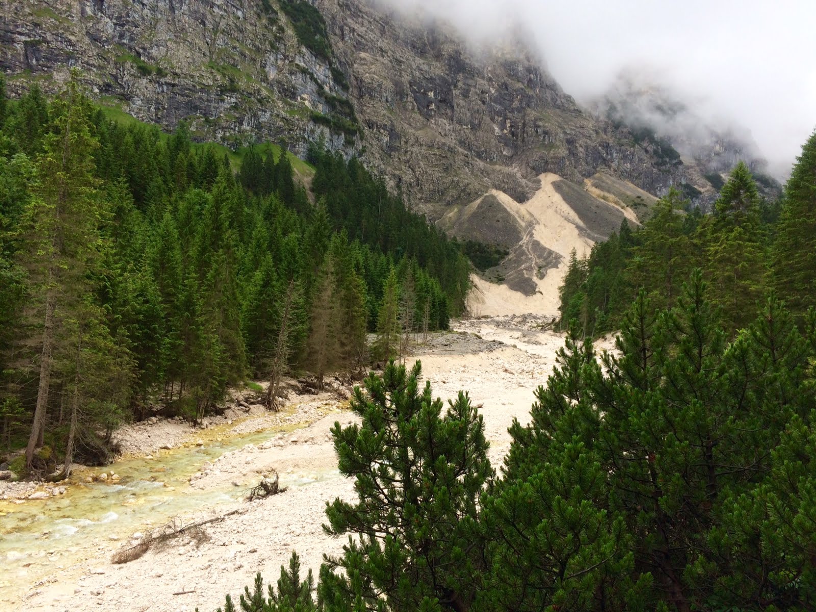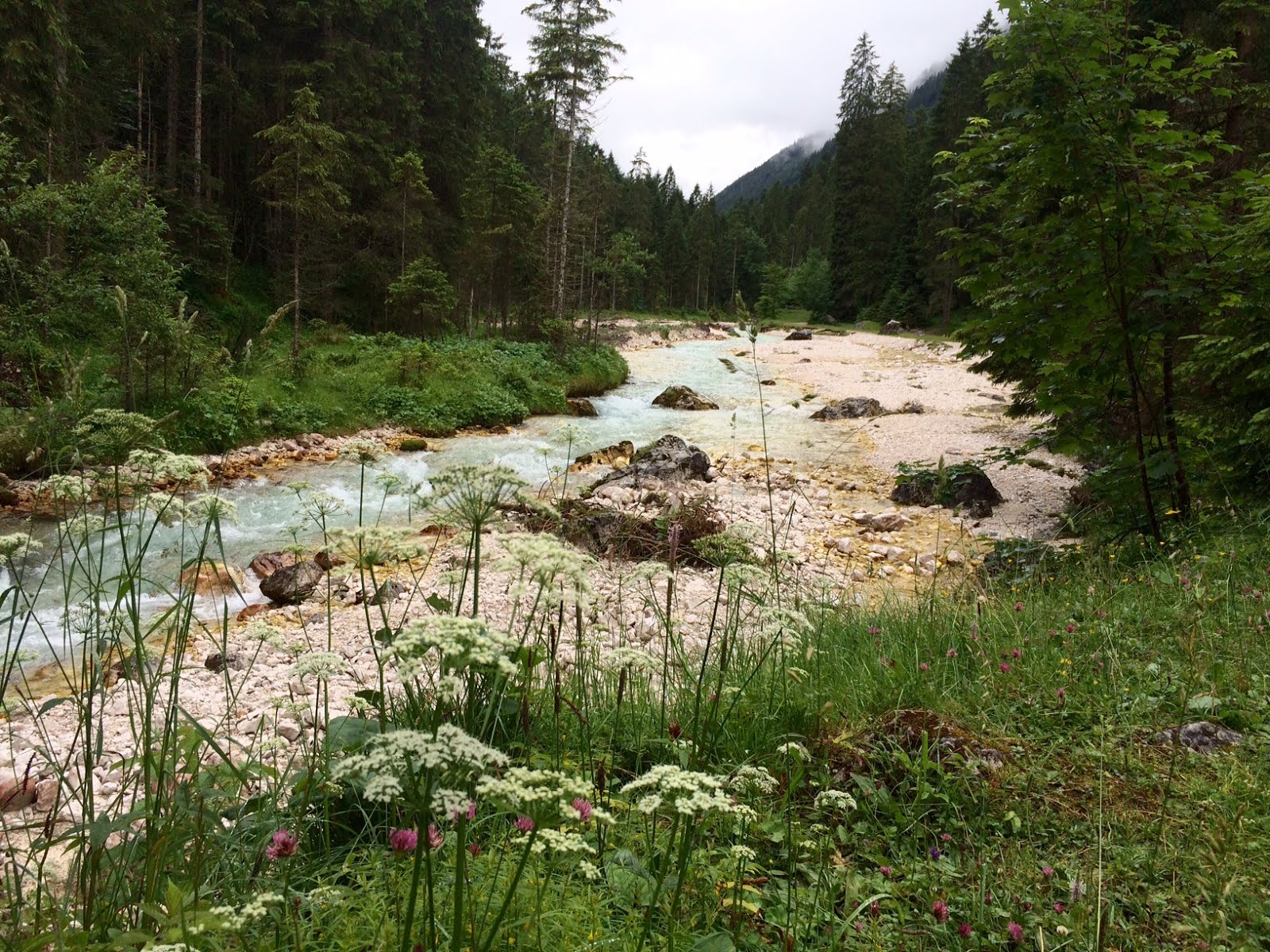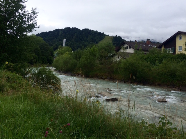 V Garmischi mrholí. Dávám batoh na záda a v 11:10 vyrážím. Prve po asfaltové cyklostezce podél řeky Partnach, která mě bude provázet velkou část dne.