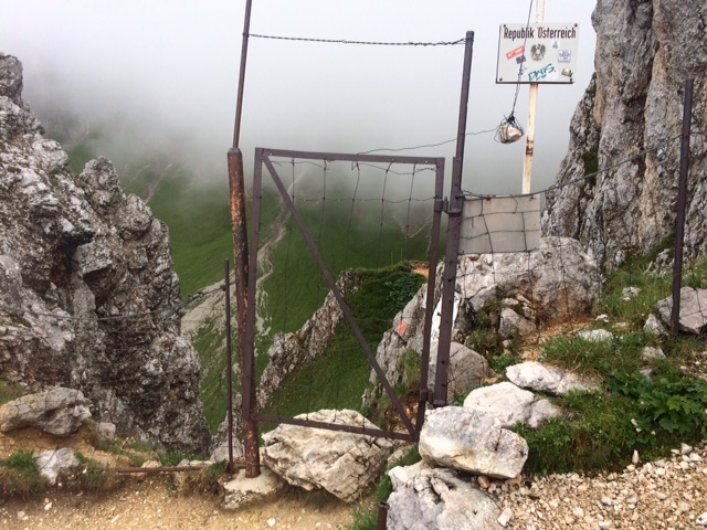 Cesta dál je v mlze, občas se něco odkryje a dost mě to baví. Asi po půl hodině překročím plůtek, který značí hranici – jsem v Rakousku! A najednou ne všechno nějak zelenější!