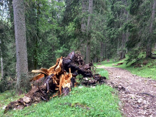 Pak už cesta klesá jen níž a níž a někdy kolem páté jsem u Tillfussalm (1400 m). Ale bohužel mě tu nechtějí. Prý mám zkusit Gaistalalm o 10 min dál. Tady se paní sice tváří trochu nejistě, ale když jí řeknu, že v Tillfussu mě nechtěli, tak kýve, že teda ok.