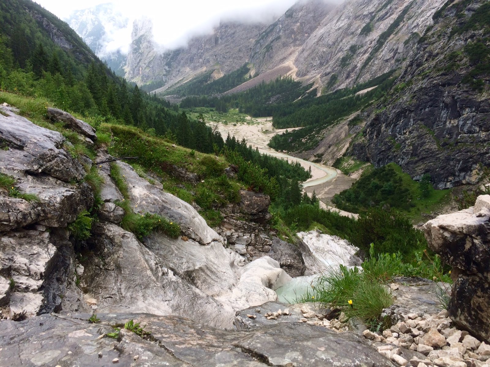 V Garmischi mrholí. Dávám batoh na záda a v 11:10 vyrážím. Prve po asfaltové cyklostezce podél řeky Partnach, která mě bude provázet velkou část dne.