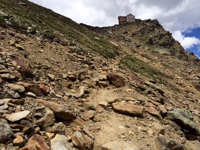 Původně jsem myslel, že teď už to bude jen kousek, ale to je omyl. Chata je ve výšce 3000, což jsem nečekal. Takže to trvalo trochu dýl. Na chatě jsem okolo druhé. Potkávám tu opět Saskiu a Eikeho, kteří se do Obergurglu svezli autobusem.