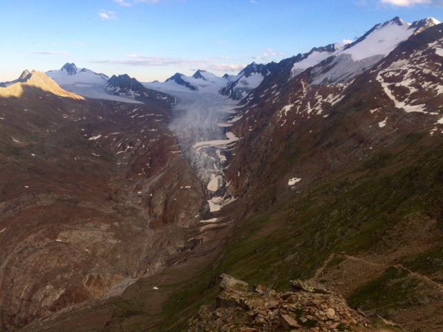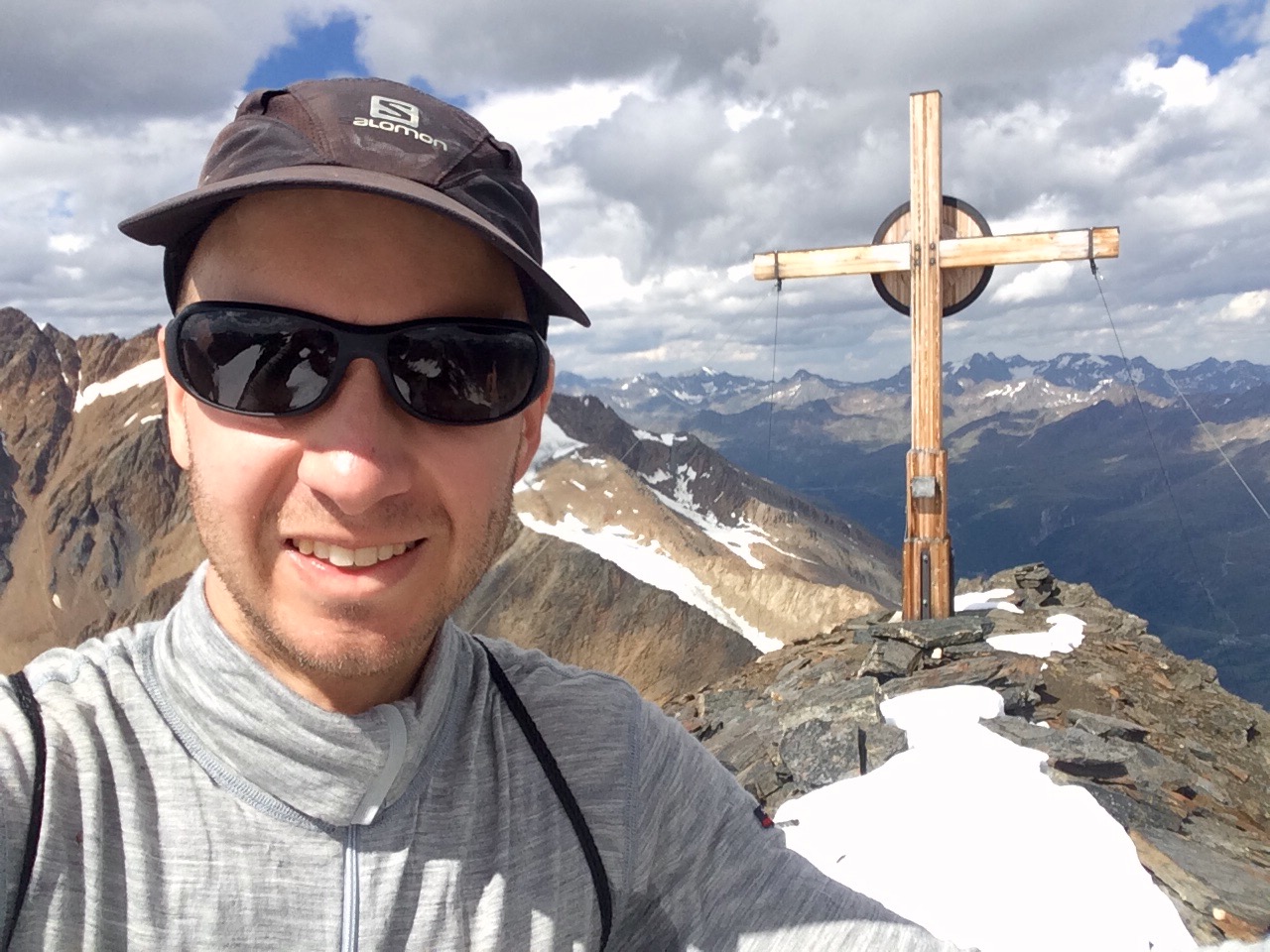 Dozvídám se, že by mělo jít vylézt na kopec nad chatou – Hinterer Spiegelkogel (3426 m). Tak tím je rozhodnuto. Dám si pivo a oběd, pak se připravím a jdu.