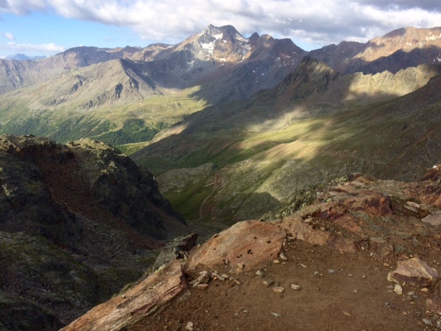 Vyrážím asi 7:50. To jde. Prve dolů do Kurzras (2000 m). Je to docela fajn cesta. Ale ta vesnice je teda nic moc. Samé hotely, většinou už mají nejlepší roky za sebou. Vede odsud několik lyžařských vleků.