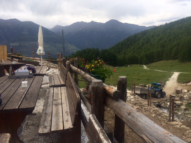 Všichni jsou tu milí. Su fakt rád, že jsem nezůstal dole ve městě. Zrovna je tu na návštěvě rodinka toho kluka, co tu pomáhá. Bavím se s nima a dozvídám se trochu o zdejší situaci s němčinou a italštinou. Jsem v Jižním Tyrolsku. Od konce první světové války patří Itálii. Ale je tu hodně Němců, například i tady ti lidé na tomto almu. Společnost je tu rozdělená. Tak 60 % je Němců a 40 % Italů. Moc se spolu nebaví. Mají školy zvlášť. Dřív to měli Němci těžší, dneska už v rámci Tyrolska můžou i s úřady komunikovat německy a celkově se situace zlepšila, už nejsou občané druhé kategorie. Ale většina Italů si myslí, že by měli mluvit italsky – je to přece Itálie. Například Paolo ze včerejška.