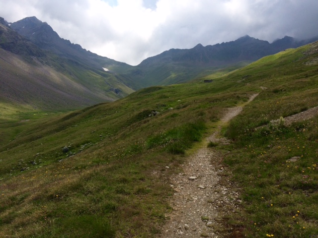 V sedle jsem v čase 1:15. A do dvou hodin jsem na chatě Cevedale. Pokračuju v sestupu a najednou AU! Uklouznu na šutru a spadnu přímo na kostrč/ levou část zadnice na ten šutr. To je bolest. Za minutu se oklepu a pokračuju dál. Ale tohle asi bude bolet několik dní. No, stane se.