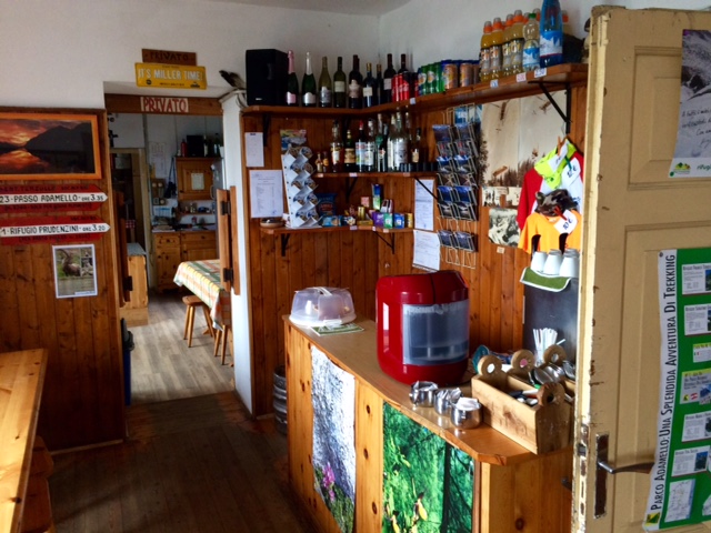 Hodně lidí odtud chodí na Monte Adamello (3539 m). Tak se ptám chataře, jak to tam vypadá. Prý je to ok. Jde se přes takovou ferratu a pak kousek po ledovci. Další lidi v jídelně, co dnes na vrcholu byli, se přidávají do diskuze a taky říkají, že je to ok. Že ani nepoužili mačky. No tak super! Někteří mi říkají, že je dobré vyrazit tak v 5. To se mi teda moc nechce. Ale chatař říká, že to nejí třeba, že jsem rychlej a navíc má být zítra hezky celý den, takže není kam spěchat. Perfektní.