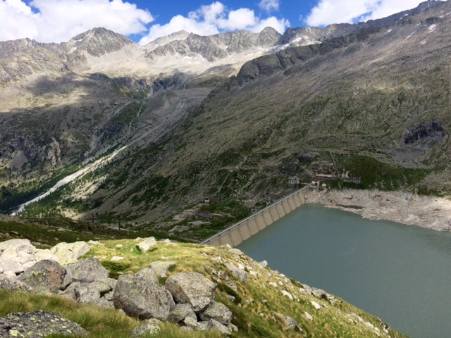 Za chvíli jdu kolem Rifugio Tonolini. Pak je to tak 20 min dolů k Rifugio Baitone. To je přímo na přehradě. Jo, přehrad tu mají mraky.