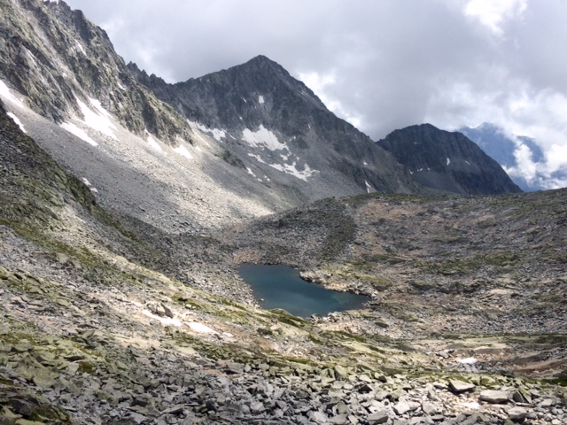 Jak začnu sestupovat ze sedla k jezírku, tak brzo dojdu 3 Češky. Jdou z Garibaldiho, kam jsem měl původně včera namířeno, ale teď tu chatu míjím. Chvíli se s nima bavím a pak pokračuju.