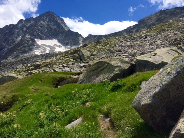 A pak ještě asi 400 m do sedla Passo dell’Avio (2881 m), to už zase vypadá, že tudy nikdo nechodí, ale značek je naštěstí dost.