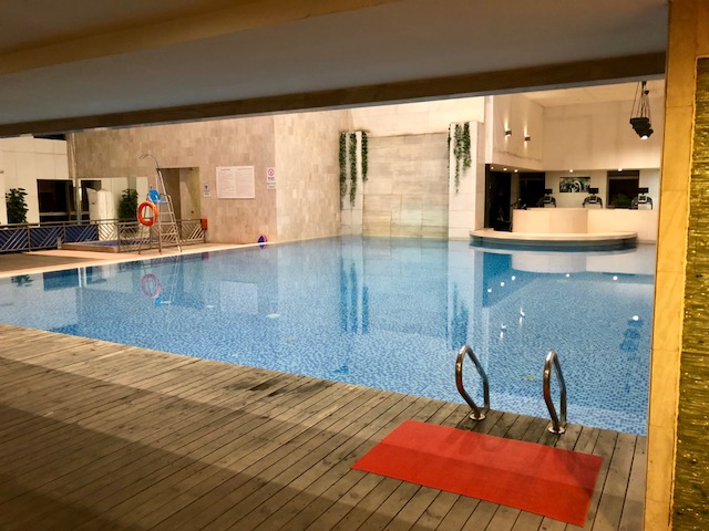 Ubytoval jsem se a přemýšlel, co dál. Prve jsem se šel podívat, kudy se dá vstoupit do toho parku Baiyunshan. Bylo už zavřeno na noc, ale vchod jsem našel. Když jsem se vrátil do hotelu, tak jsem si šel ještě zaplavat na bazén, který byl v 5. patře. (Můj pokoj byl v 10.) Varovali mě, že voda je studená. Měla 20 stupňů, bylo to velice osvěžující. Vydržel jsem 5 minut.