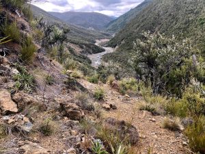 U chaty jsem někdy o půl 11. Dávám si poslední tortilu s arašídovým máslem a v 11 vyrážím. Je to dalších 12 km přes 2 kopce až k silnici. Ještě vystoupám asi 700 m. Je to stezka pro horská kola. Takže občas je to až srandovní, jak to nejde přímo dolů, ale mírnýma serpenýnama. Nahoru je to ale občas strmé hodně.