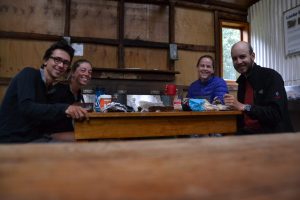Je fakt hnusně, ještě že jsou tu ty chaty. Na chatě je Luke a Kanadsko-Kiwi pár. Za chvíli přichází D+L. Vařím večeři. Pak přichází i Francis. Už jsme ji chtěli odepsat, že sem dnes nedojde!