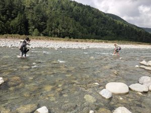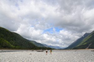 Vstáváme dnes až v 7. Vyrážíme krátce po osmé. Dneska půjdu většinu dne s Kanaďanama. Prvních 18 km je sice relativně rychlých, ale ne úplně zadarmo. Jdeme širokým řečištěm a musíme pořád hledat, kudy vede cesta. Ona totiž po většinu cesty neexistuje. Člověk jde různě po šutrech po jedné či druhé straně. Občas se musí brodit. Řečiště je široké stovky metrů.