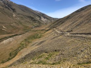 A teď to přijde. 17 km k další chatě. Dalších 700 m stoupání, ale vypadá to, že to bude pozvolné a docela příjemné. Chyba lávky! Začalo to tím, že jsme šli 100-200 m blbě, jiným údolím. Vrátili jsme se a nastoupili do správného řečiště. Byla to docela malá říčka a naším údělem bylo jít v podstatě přímo tou řekou. Hlavně protože všechno kolem bylo buď zarostlé pichlavým bodláčím, anebo to byly strmé svahy. Myslel jsem, že to bude jen kousek, podle mapy to tak vypadalo. Bylo to asi 4-5 km.