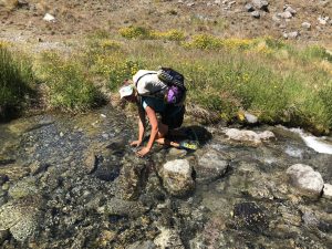 Mokro v botách by mi ani tak nevadilo, ale v tom prudkém potoce se člověk nevyhne kamínkům v botách. Nabírají se docela rychle. A tyto kamínky pak ničí vnitřek boty a ponožky. A oba moje páry ponožek už mají díry. Zkusím to ještě zašít, ale nějak na to teď nebyl čas. A asi to stejně nepomůže na dlouho. A nové ponožky zřejmě seženu až ve Wanace, kde na mě navíc čekají dva další páry ponožek. Je to asi 300 km, takže tak 10 dní. Uvidíme, snad to nějak vydrží. Bude záležet na terénu další dny.