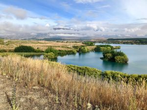 Zhruba na 20. kilometru dojdu k jezeru Ohau. Je tu několik rodin na kolech. Do kempu u jezera je to ještě 10 km a s cyklistama se několikrát potkám, protože furt zastavujou.