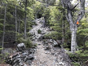 Ve 13:10 pokračuju dál. Čeká mě 11 km k další chatě přes Breast Hill (1578 m). Od chaty vede stará polňačka, takže se jde dobře. Prve se nastoupá asi 300 m a člověk se dostane na hřeben.