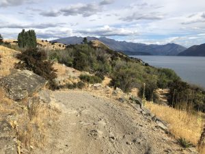 Prve mě čeká 15 km dál po břehu jezera Wanaka. Teda nakonec je to spíš 17 km. Je to celkem příjemná cesta, líbí se mi to. Je to docela hore dole, takže asi v půlce vytahuju hůlky.