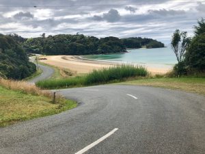 Zhruba v 1 vyrážím. K první chatě – Port William Hut – je to prý 12 km. Prvních 5 je po silnici až na konec, kde začíná stezka.
