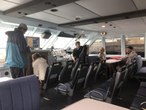 V 11 jsme vyrazili. Byl to takovej relativně malej člun, asi tak pro 50 lidí. A byla tam jen jedna hlavní kajuta, kde vepředu seděl kapitán před ovládacím panelem. Jeli jsme asi 27 uzlů. Cesta trvala hodinu.