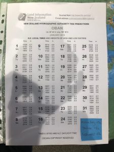 Prve jsem šel do DOC Visitors Centra. Tam jsem se dozvěděl pár užitečných informací. Například jsem si vyfotil rozpis přílivů a odlivů na další dny. Půjdeme totiž přes pár pláží a někde je to při přílivu neprůchodné. Taky jsem si za poplatek vypůjčil mapu.