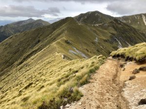 Cesta po hřebeni mě baví. To je to, co mi tu na Zélandu chybí. Mají tu toho malinko. Přitom hor mají tolik! No tak aspoň že dneska se toho nabažím. Postupně stoupám výš, až dojdu k prvnímu přístřešku. Další je ke konci hřebenovky. Kochám se. Ají počasí je fajn. Potkávám francouzský pár ze včerejška.
