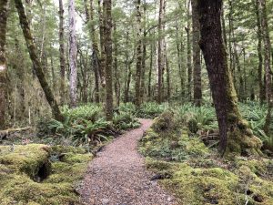 K další chatě – Iris Hut – to má být 6 hodin. Pustím se do toho. Je to snadná cesta lesem, trochu nudná.
